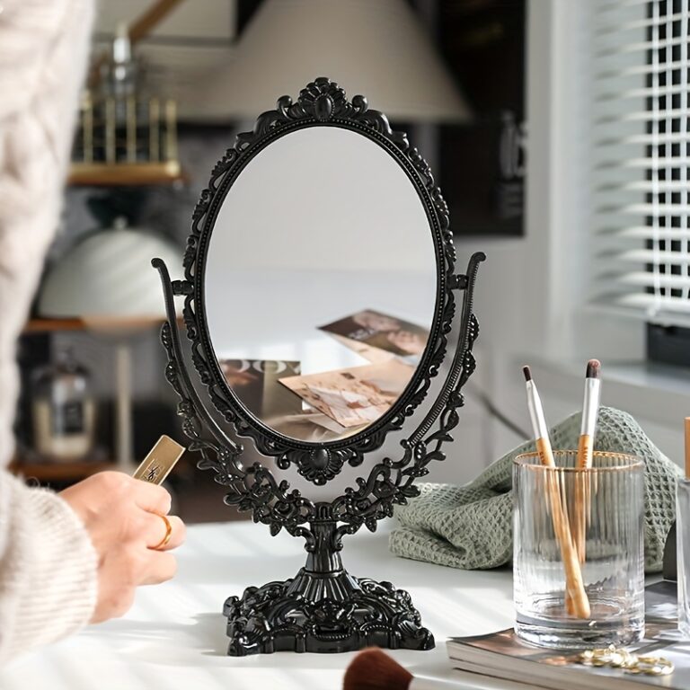 Chic Floral Frame Makeup Mirror for Women – Perfect for Vanity & Personal Care, Odorless Plastic
