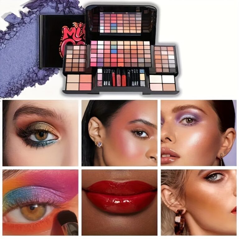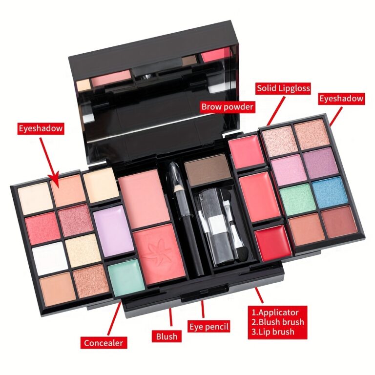 Multifunctional Makeup Set – Portable Makeup Box, with Eye Shadow, Lip Gloss, Lip Liner, Blush, Glitter, Eyebrow Pencil, Suitable for Makeup Artists and Beginners, Ideal Gift Set for Mom/Girlfriend Creamy, Berry Color/Coral Color/Mixed Tone