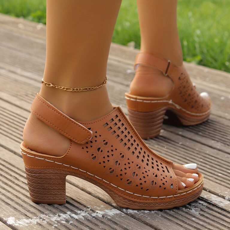 Women’s Elegant High Heel Sandals, Fashion Hollow Out Design Peep Toe Chunky Heels, Casual Summer Outdoor Sandals
