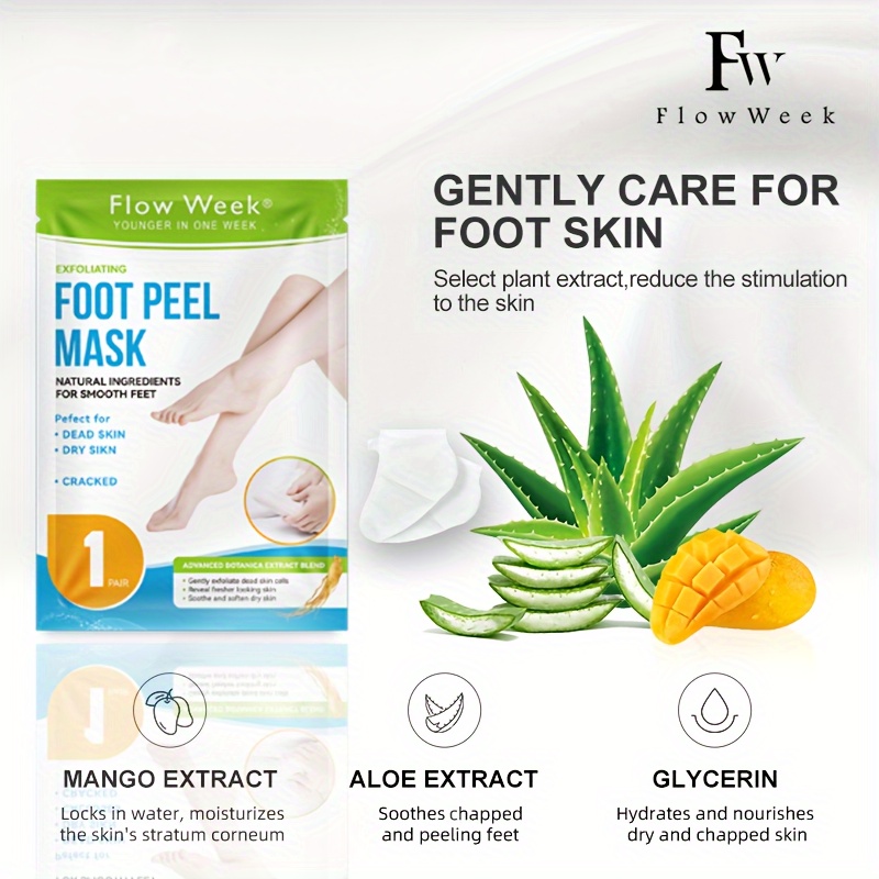 1 Pair FLOWWEEK Unscented Foot Peel Mask,