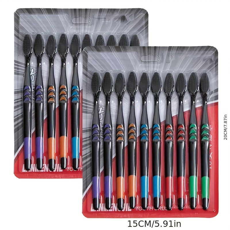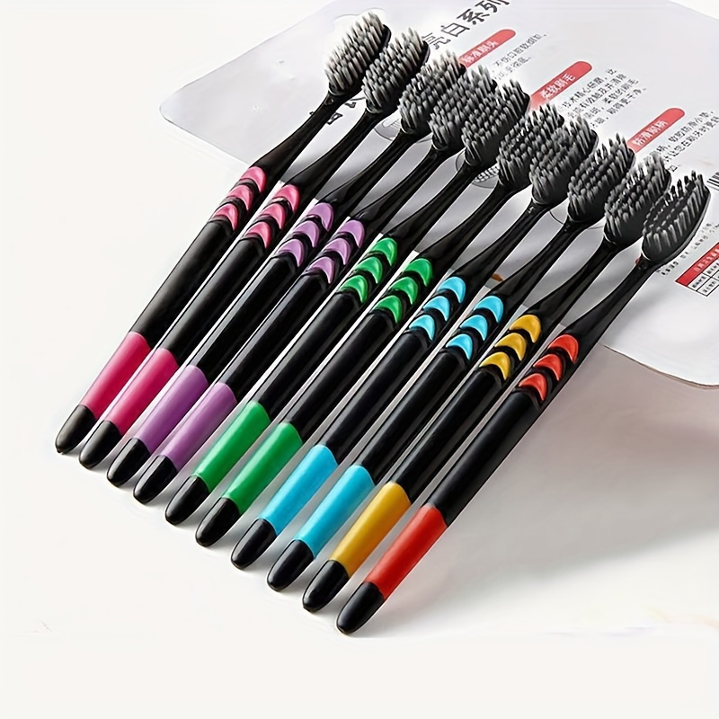 10 Pcs Soft Bamboo Charcoal Manual Toothbrushes