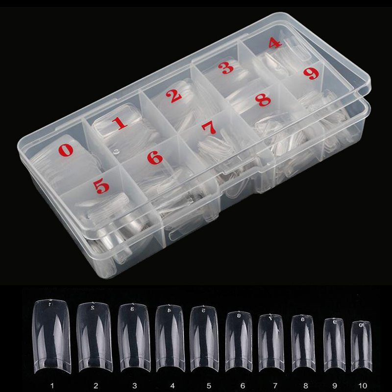 100/500pcs half set of nail tips – Acrylic nail tips, 10 sizes Ladies French Acrylic artificial nail Tips for nail salons and home DIY