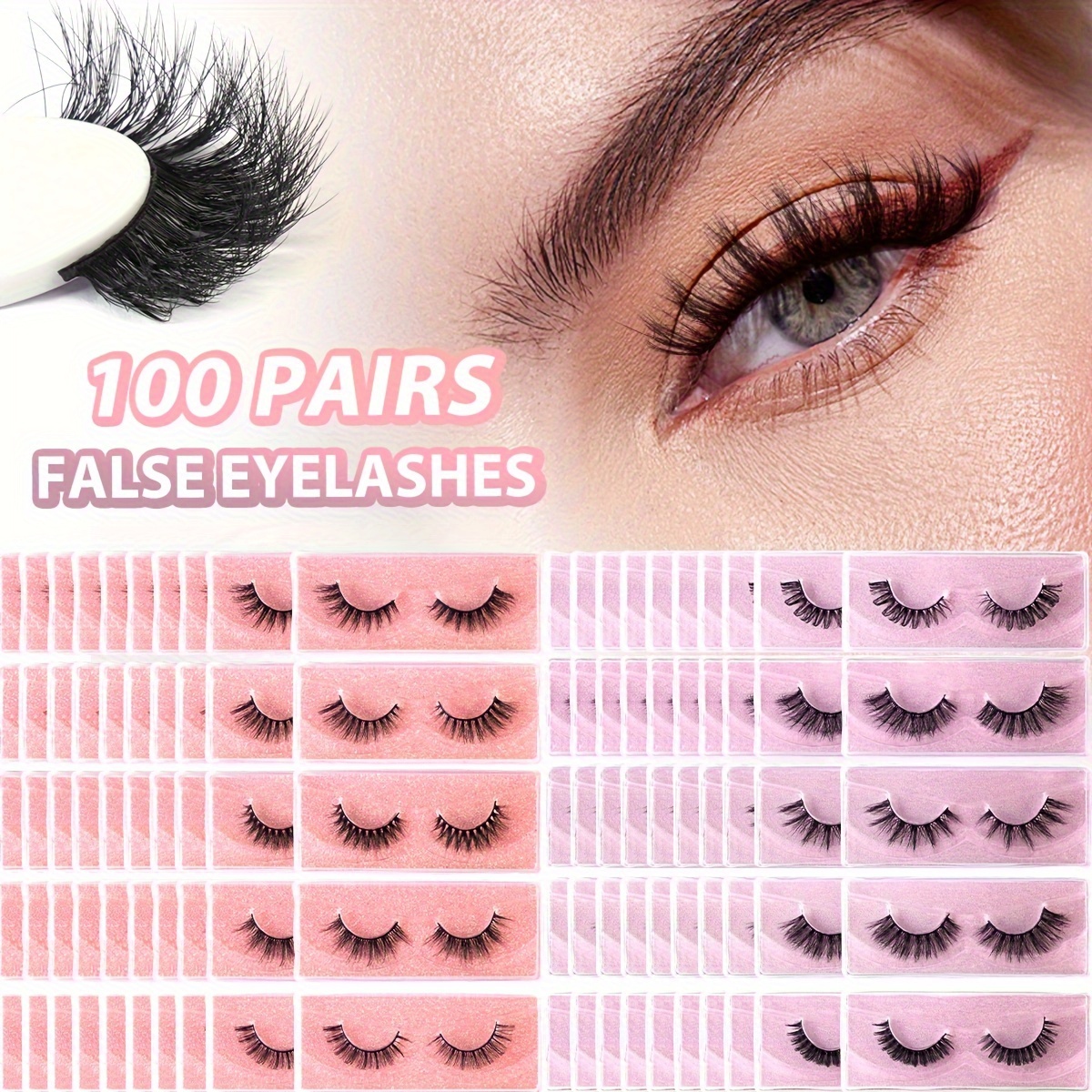 100 Pairs Of False Eyelashes Set Natural Lengthy Fluffy Curled Dense Multi-style Mixed Lengths Artificial 3D Mink Eyelashes Suitable For Daily Travel Portable Cat Eye Eyelashes Eyelash Extension