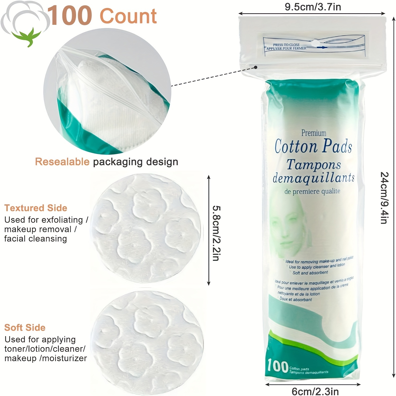 100pcs of High-Quality Non-woven Cotton Pads, Non-Fluffy,