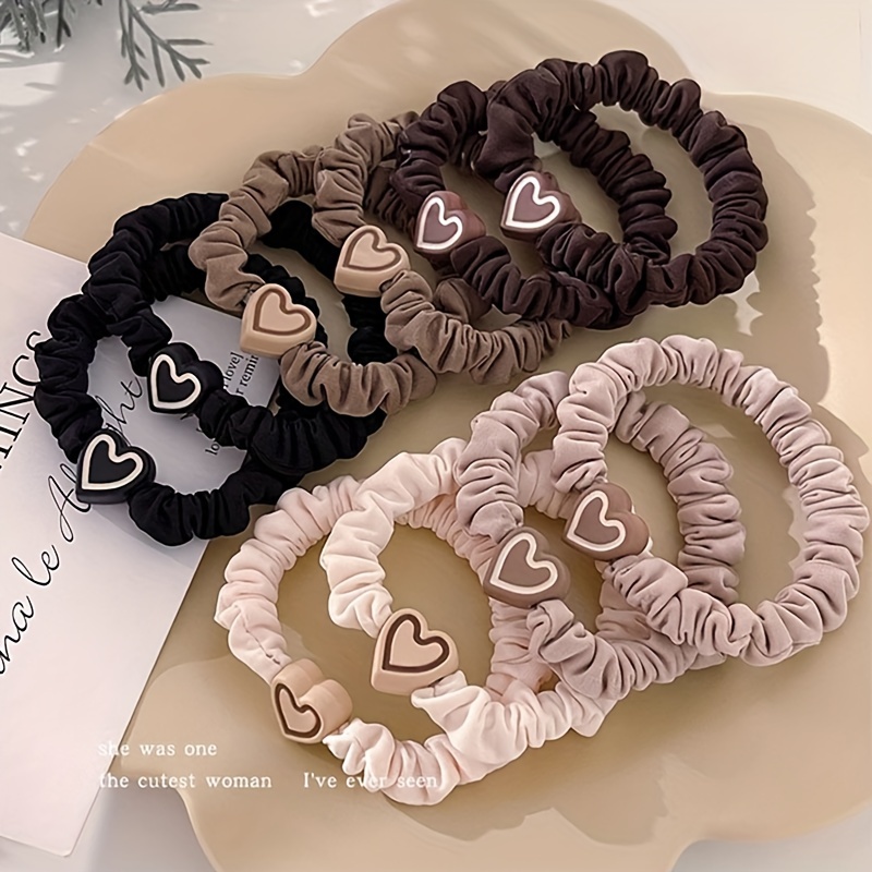 10pcs Polyester Hair Ties with Love Heart