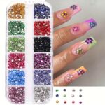12-Compartment Colorful Nail Art Rhinestones – Round
