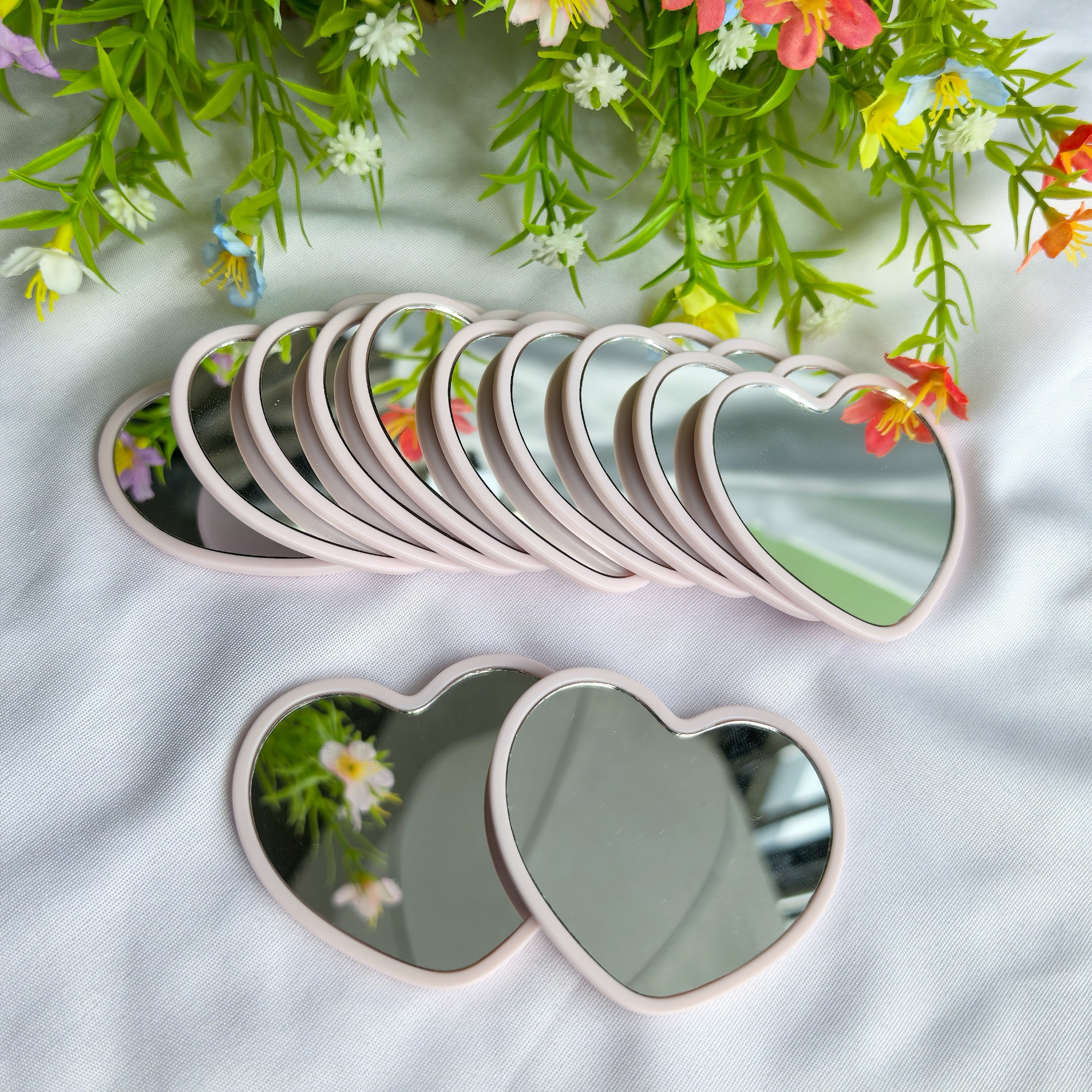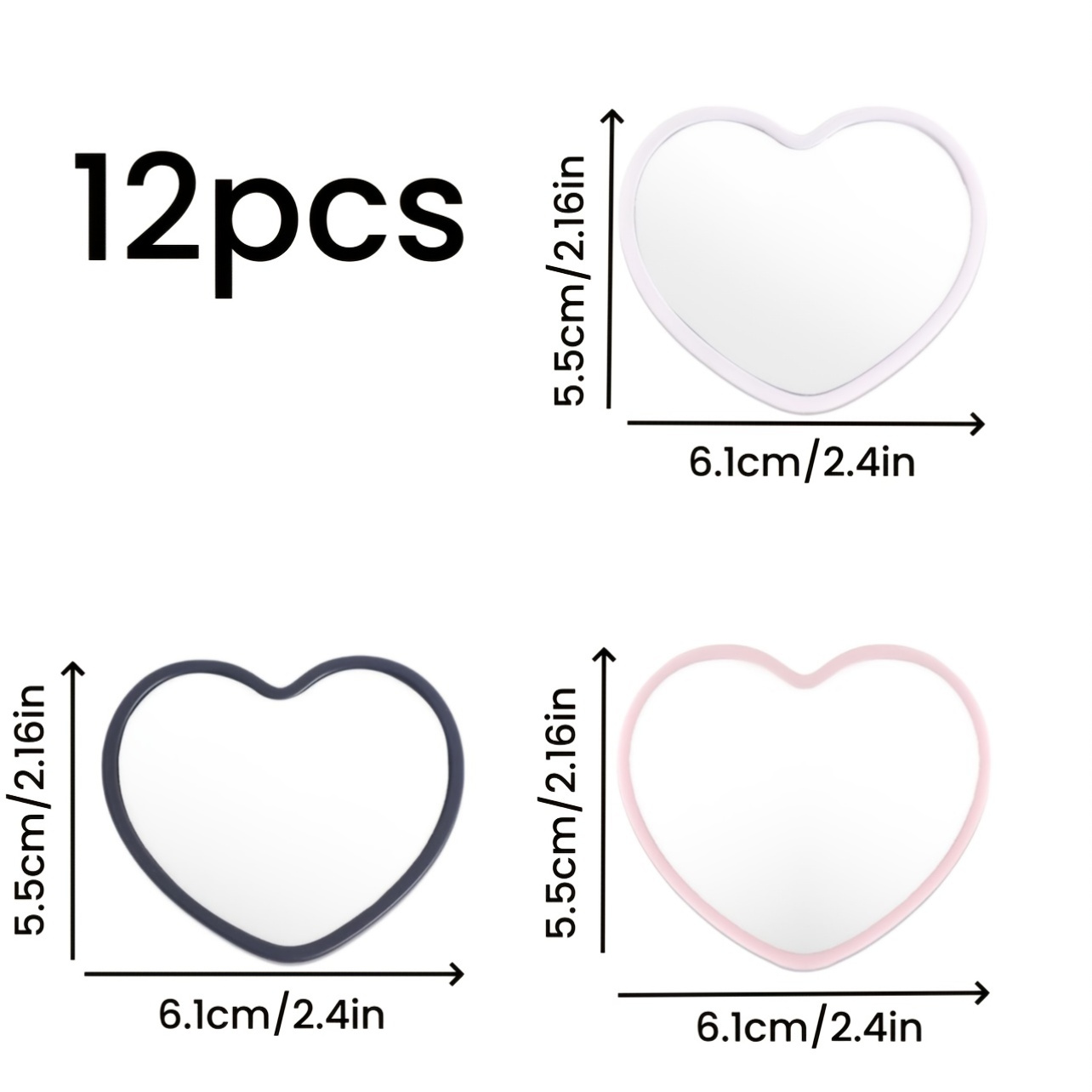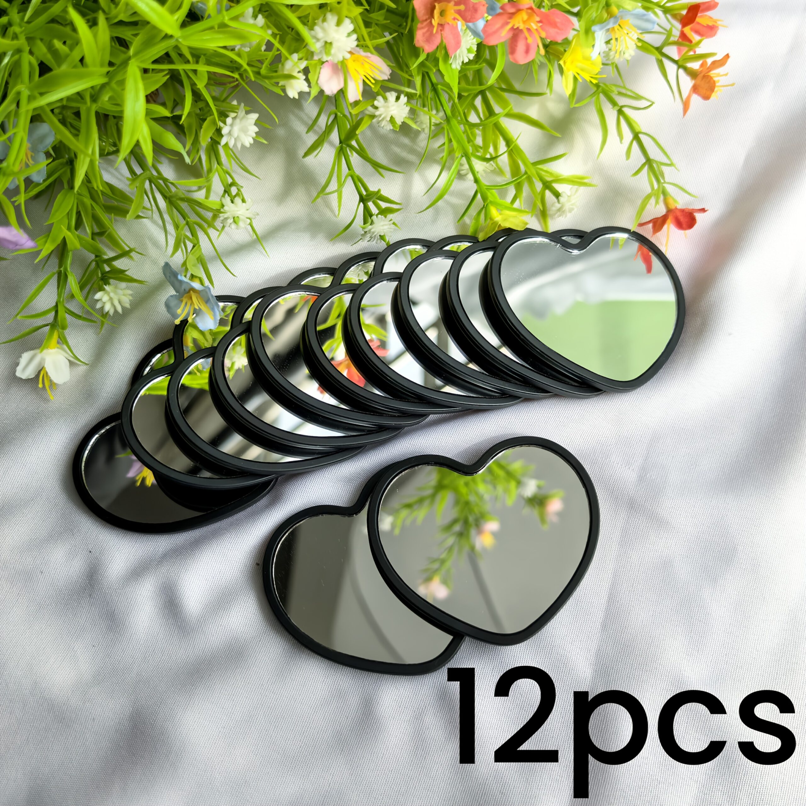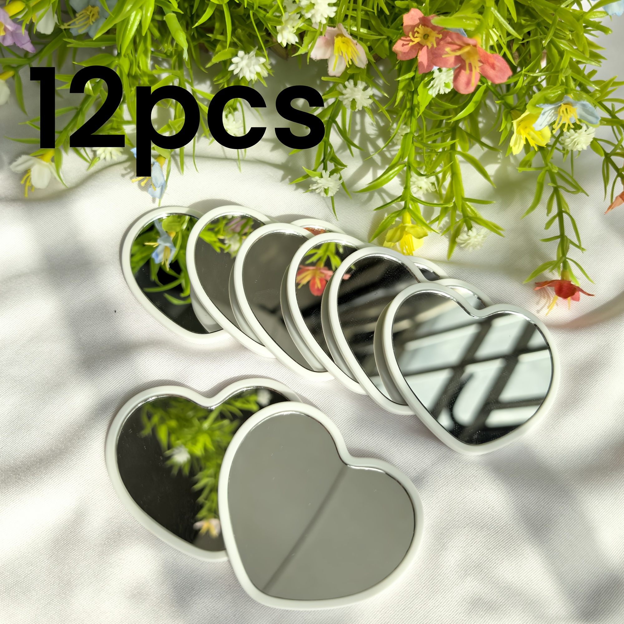 12-Pack Heart-Shaped Mini Mirrors, Polished Finish, Plastic Frame, Tabletop Mount, Unscented, Flower Theme, Portable, No Electricity Needed, Glass Surface – Pink/White/Black Options