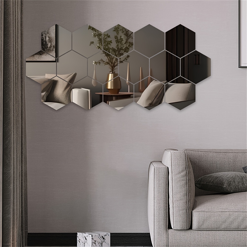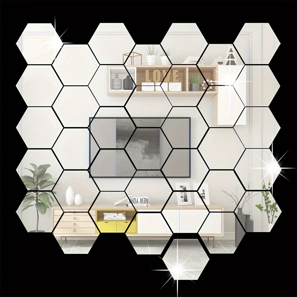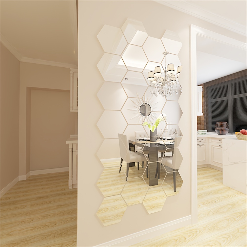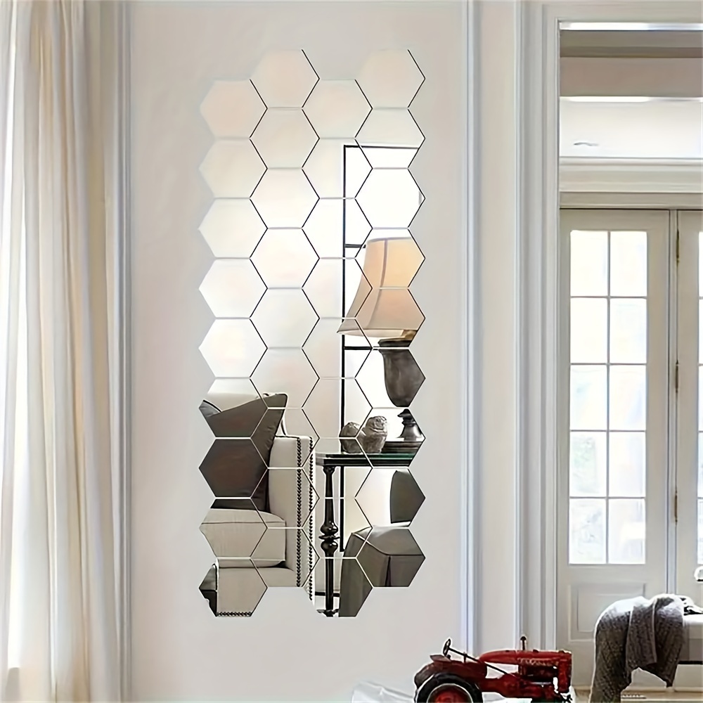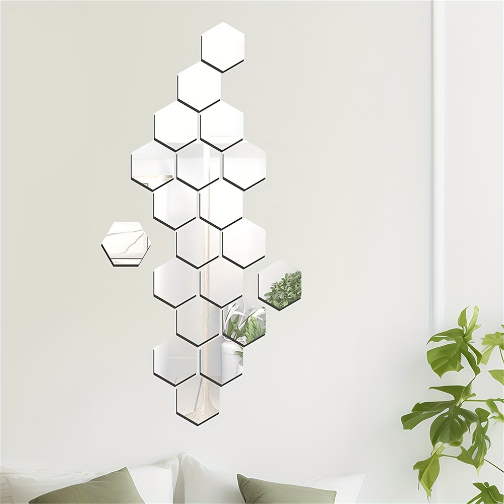 12pcs 24pcs 36pcs 3D Geometric Hexagonal Acrylic Mirror Wall Sticker Wall Hanging Makeup Mirror Background Wall Decoration Bedroom Living Room Office Kitchen Bathroom Waterproof Wall Sticker Home Decor DIY Art Acrylic Silvery Mirror