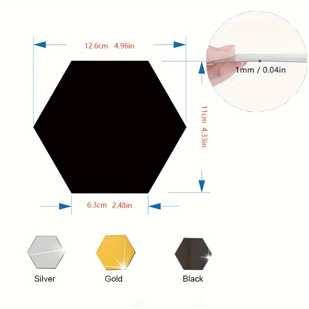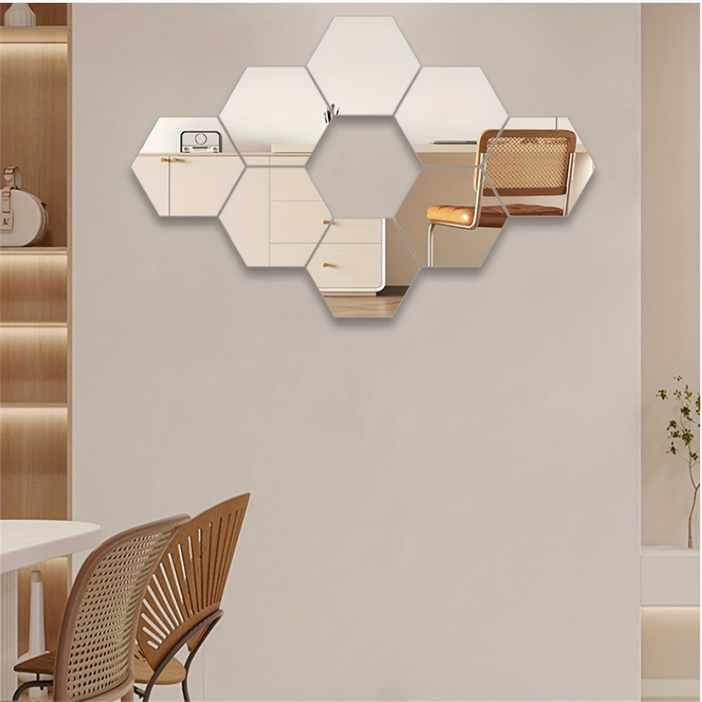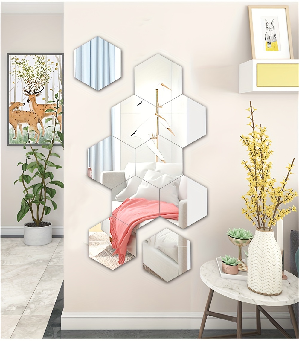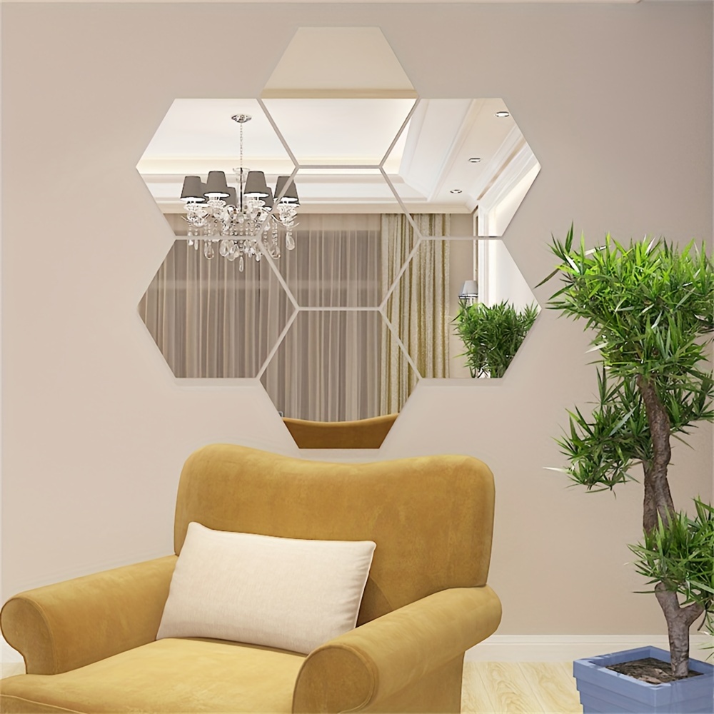 12pcs 24pcs 36pcs 3D Geometric Hexagonal Acrylic Mirror Wall Sticker Wall Hanging Makeup Mirror Background Wall Decoration Bedroom Living Room Office Kitchen Bathroom Waterproof Wall Sticker Home Decor DIY Art Acrylic Silvery Mirror
