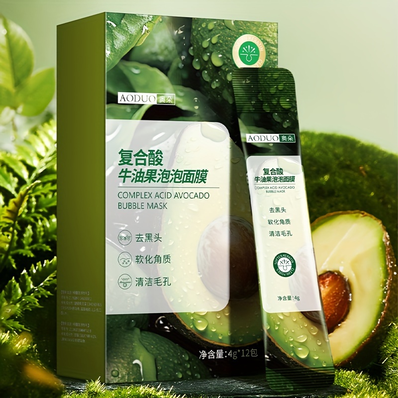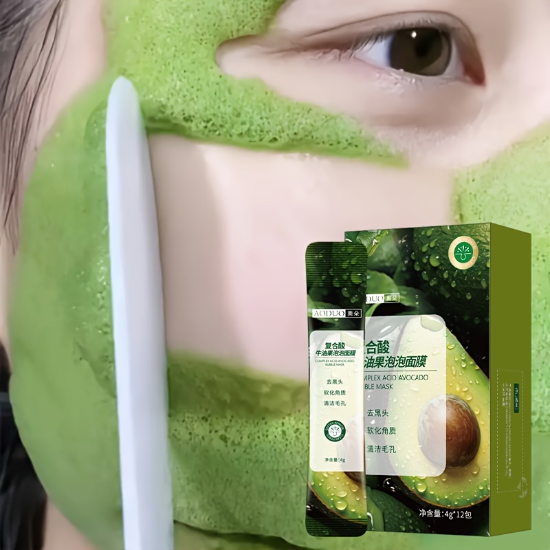 12pcs Avocado Bubble Mask Set – Deep Cleansing & Hydration with Salicylic, Lactic & Centella Asiatica, Hypoallergenic for All Skin Types, Snow for Lotus, Travel Set