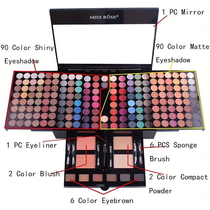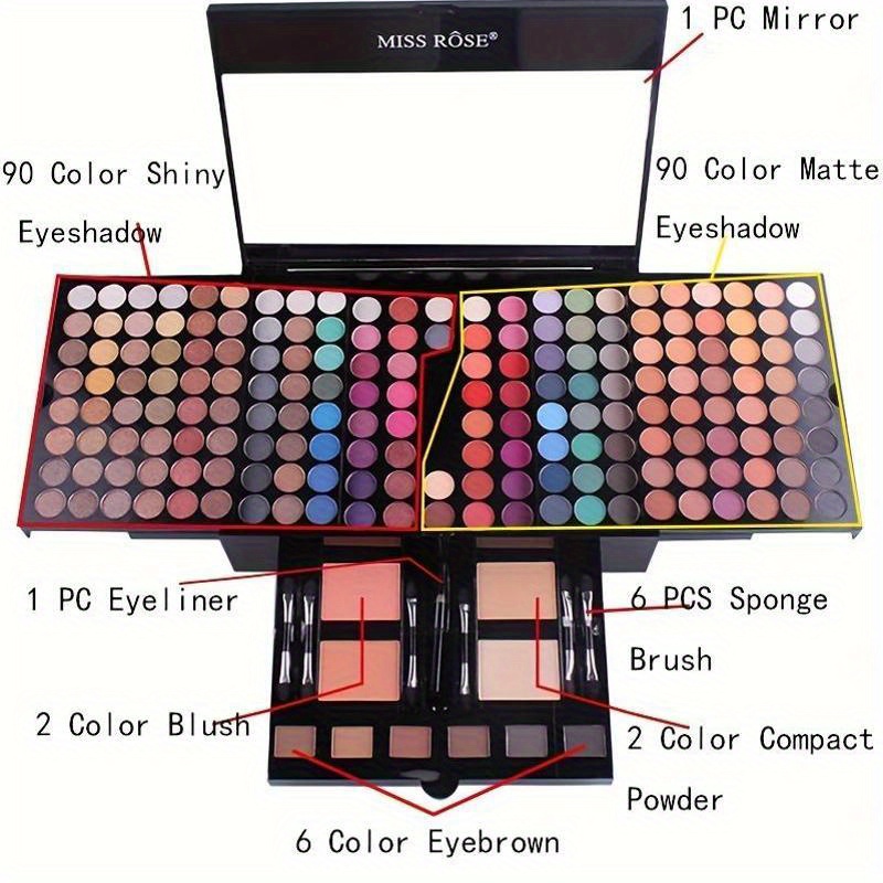 180 Color Piano Eyeshadow Palette Set, Blush Powder Contour Makeup Palette, Matte Shimmer Base Powder, Black Liquid Eyeliner Makeup