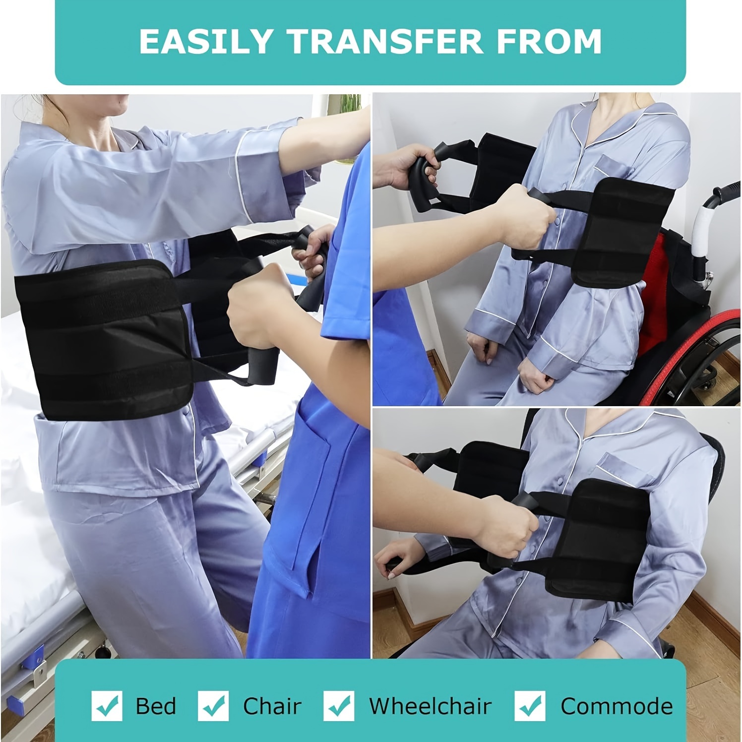 1pc Black Elderly Bedridden Transfer Belt, Adjustable