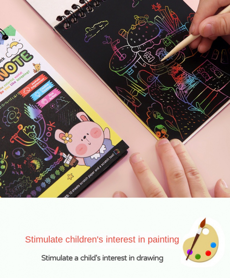 1pc Children’s Colorful Diy Scratch Painting Book, Creative Art & Doodle Scratch Paper For Kindergarten Halloween Decoration