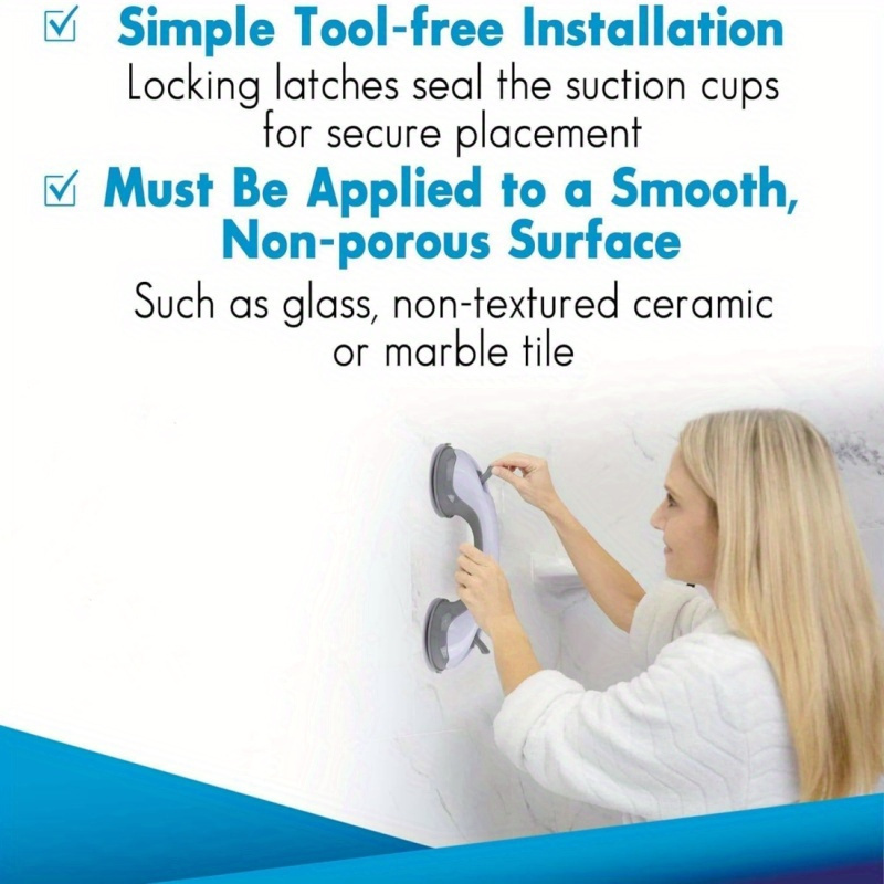 Make sure to use the armrest for balance only, not as a full weight support. Check the suction cup’s stability before each use and reconfirm its strength a few minutes later after ensuring proper adhesion.