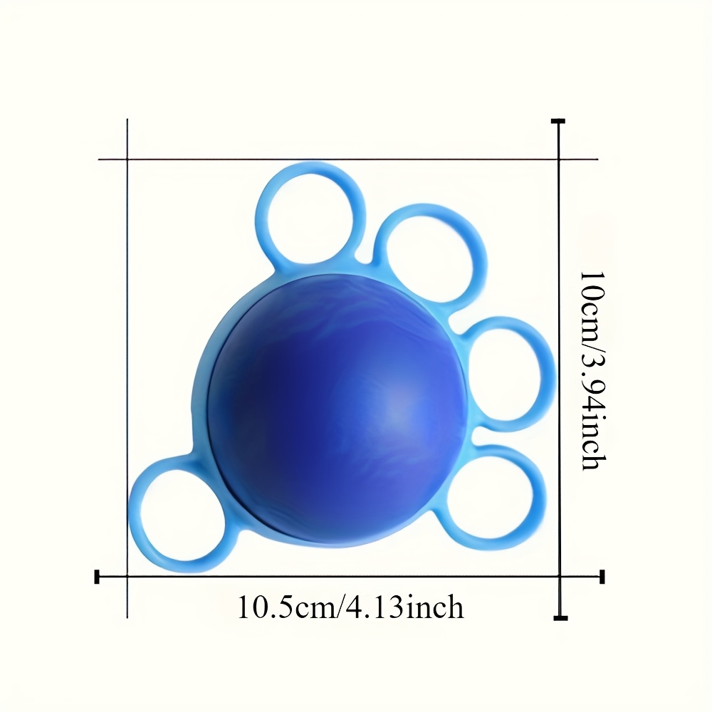 One piece of a ball designed for a five-finger grip, which helps improve hand strength and is used for finger stretching and rehabilitation training for paralysis. Dimensions: 10.5 cm by 10 cm or 4.13 inches by 3.94 inches.
