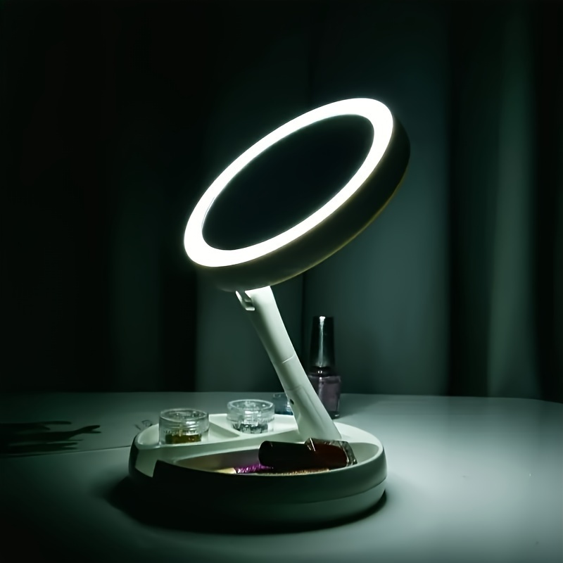 1Pc Foldable Led Vanity Mirror With Storage Box, Double-sided 1X & 10X Magnifying Retractable Mirror, Desktop Beauty Mirror For Skin Care & Makeup Use