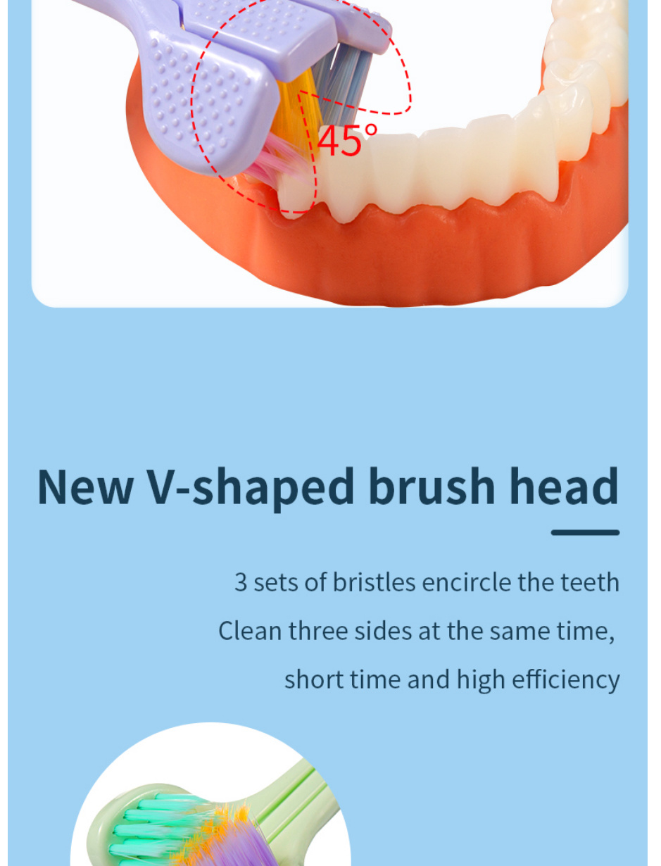 1. The V-shaped three-sided toothbrush can easily clean any blind spot, making you like brushing your teeth!