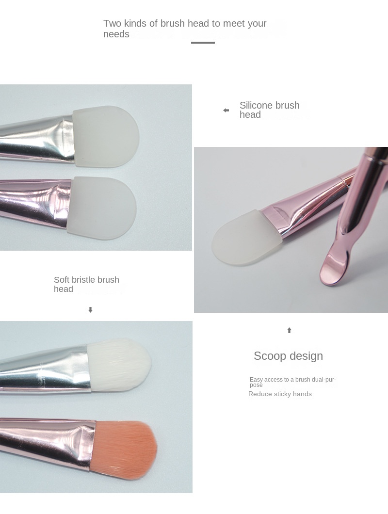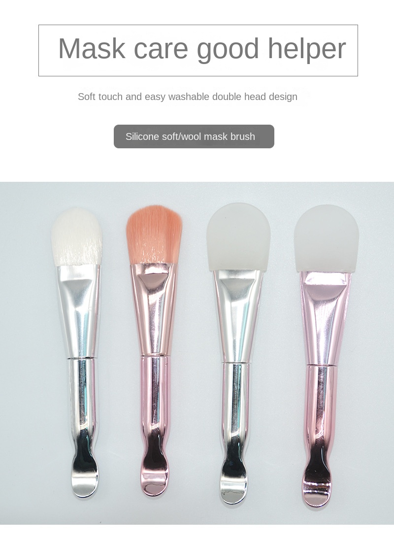 Double-Headed Soft Silicone Facial Treatment Brush Single Makeup Brush Powder Foundation Brush Clay Mask Brush Silver Double-Headed Brush Scoop Beauty Tools