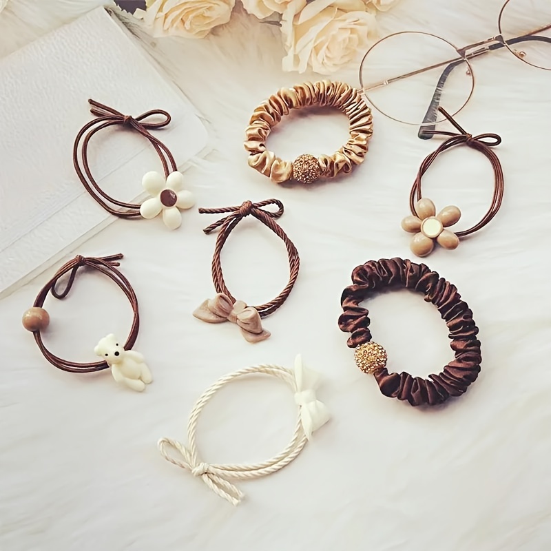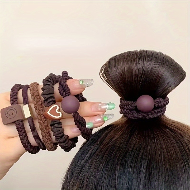 2/4/5/7/10pcs Simple Style Hair Ties, Rubber Hair