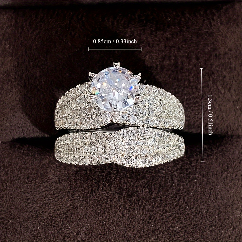 2 Pcs/set 925 Silver Plated Bridal Wedding Zirconia Ring For Women Engagement Proposal Gift Jewelry