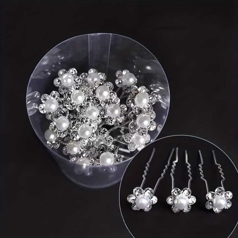 20pcs Bridal Hair Pins Set, Faux Pearls