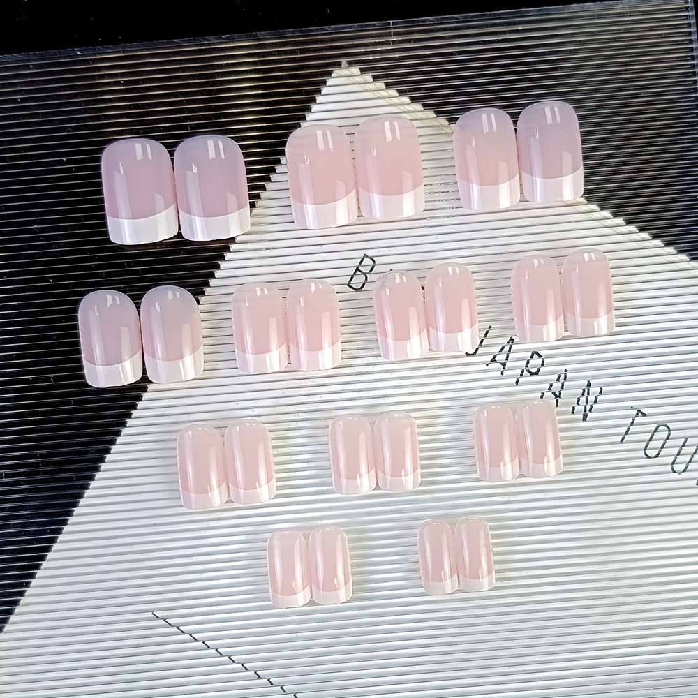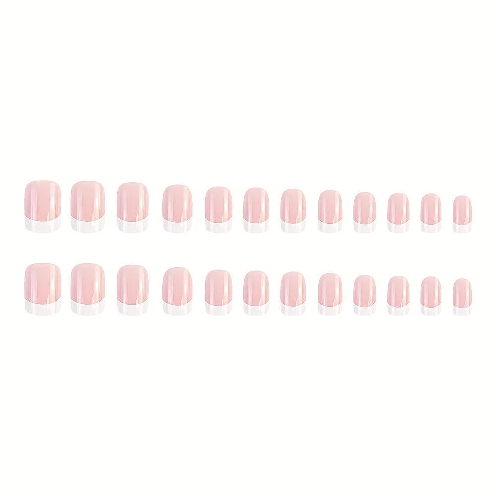 24 Pcs Classical French Medium Square False Nails With White Tip Design Acrylic Full Cover False Nails For Home Office