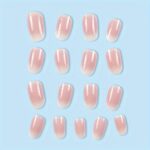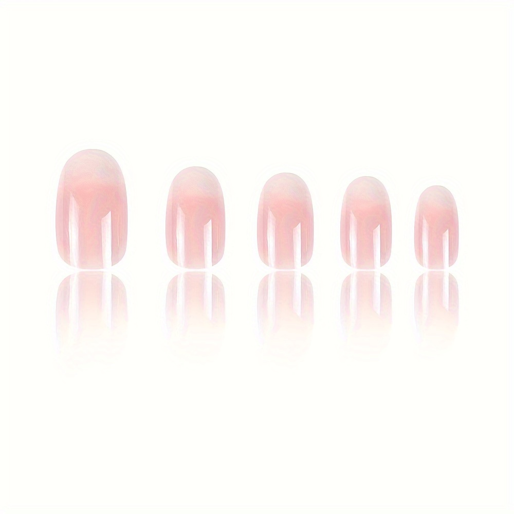 24pcs Glossy Short Almond Nails, Pinkish Gradient Press On Nails, Gentle And Sweet False Nails For Women Girls – Daily Wear