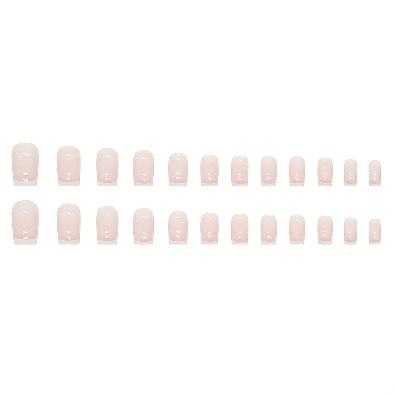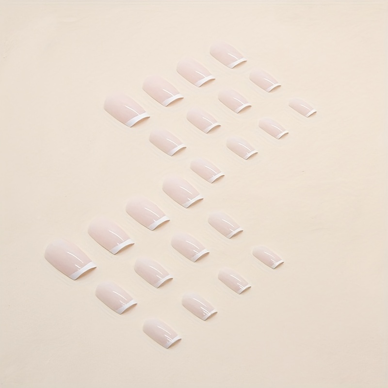 24pcs Glossy White French Tip Press On Nails – Short Square Nails with Pink Glue – Daily Wear False Nails for Women and Girls
