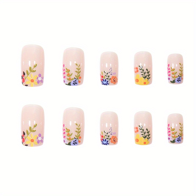 Short Square Press On Nails, Glossy Nails With Colorful French Tip, Acrylic All Cover False Nails For Women And Girls 24pcs