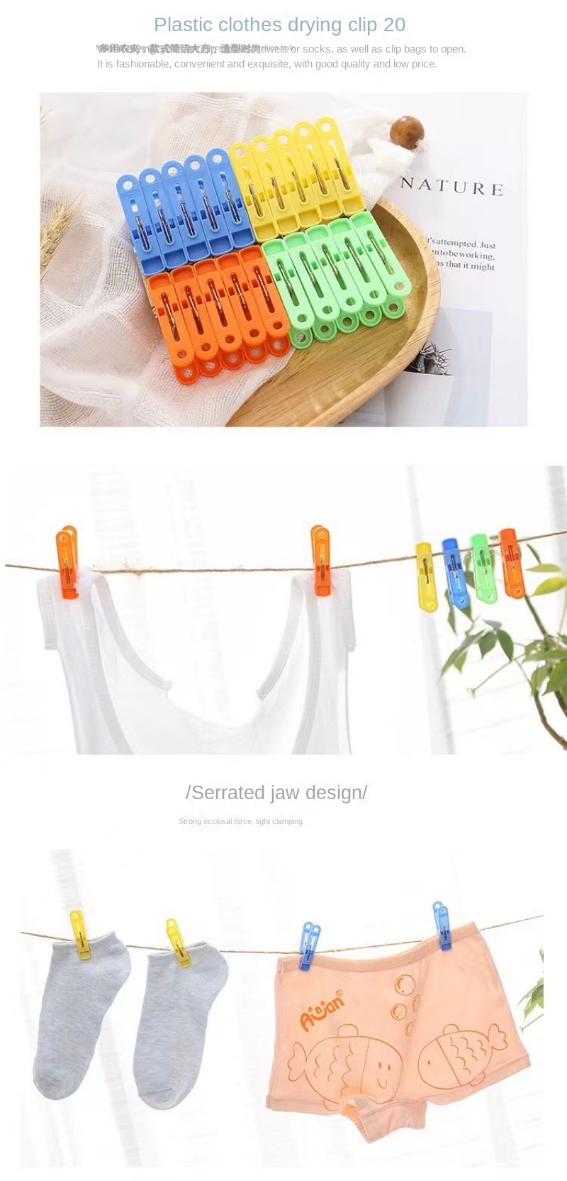24PPCs Plastic Clothes Pegs Clip 2 Thickened Plastic Clip Windproof Clip Underwear Clothes Socks’ Clip Clothes Pin