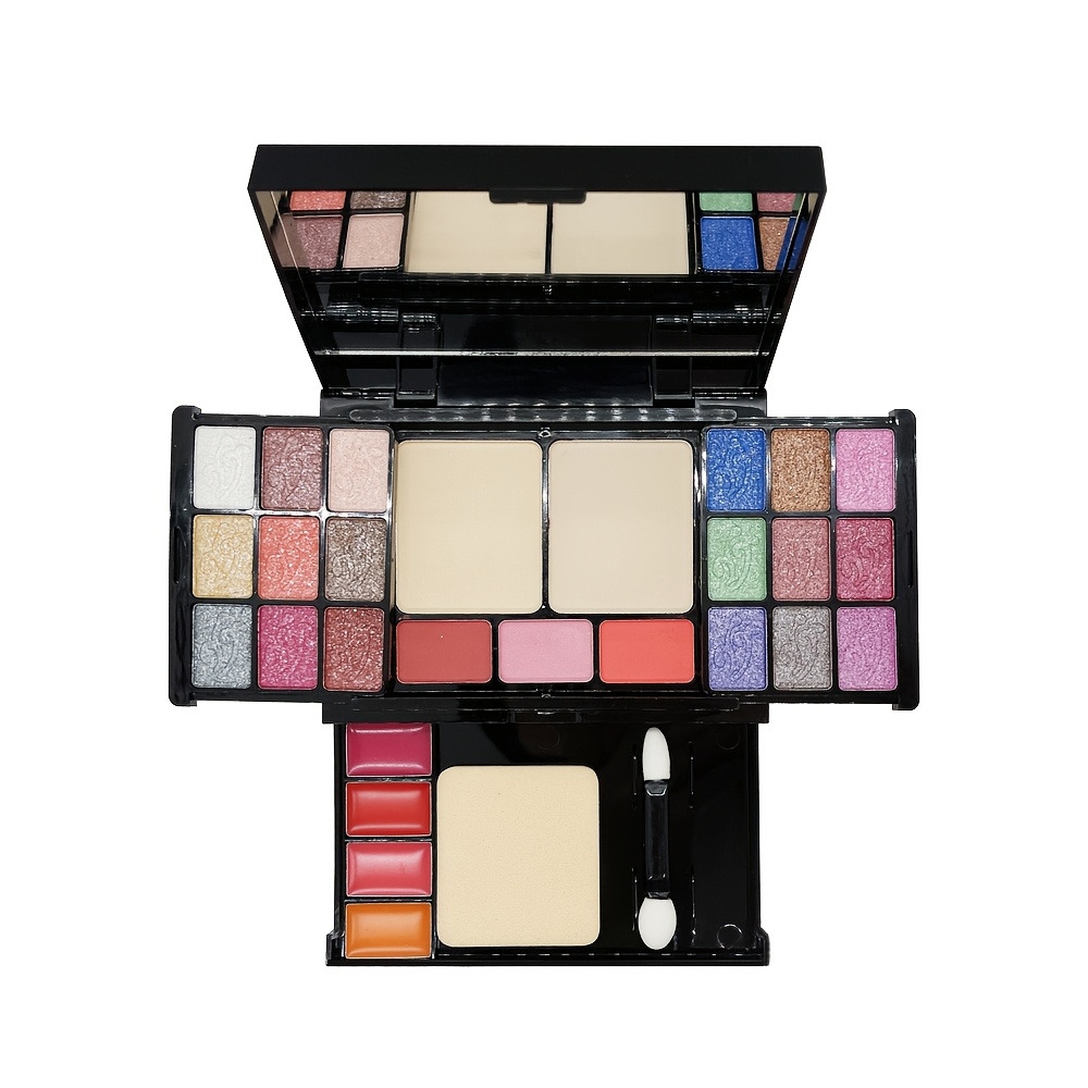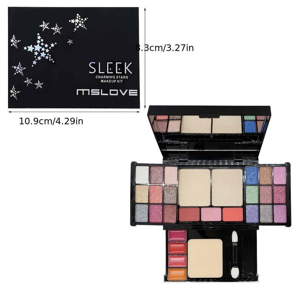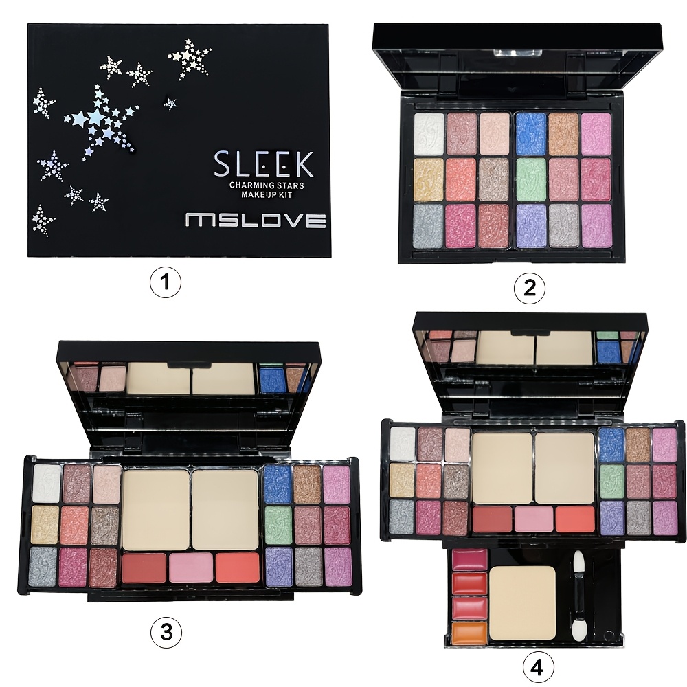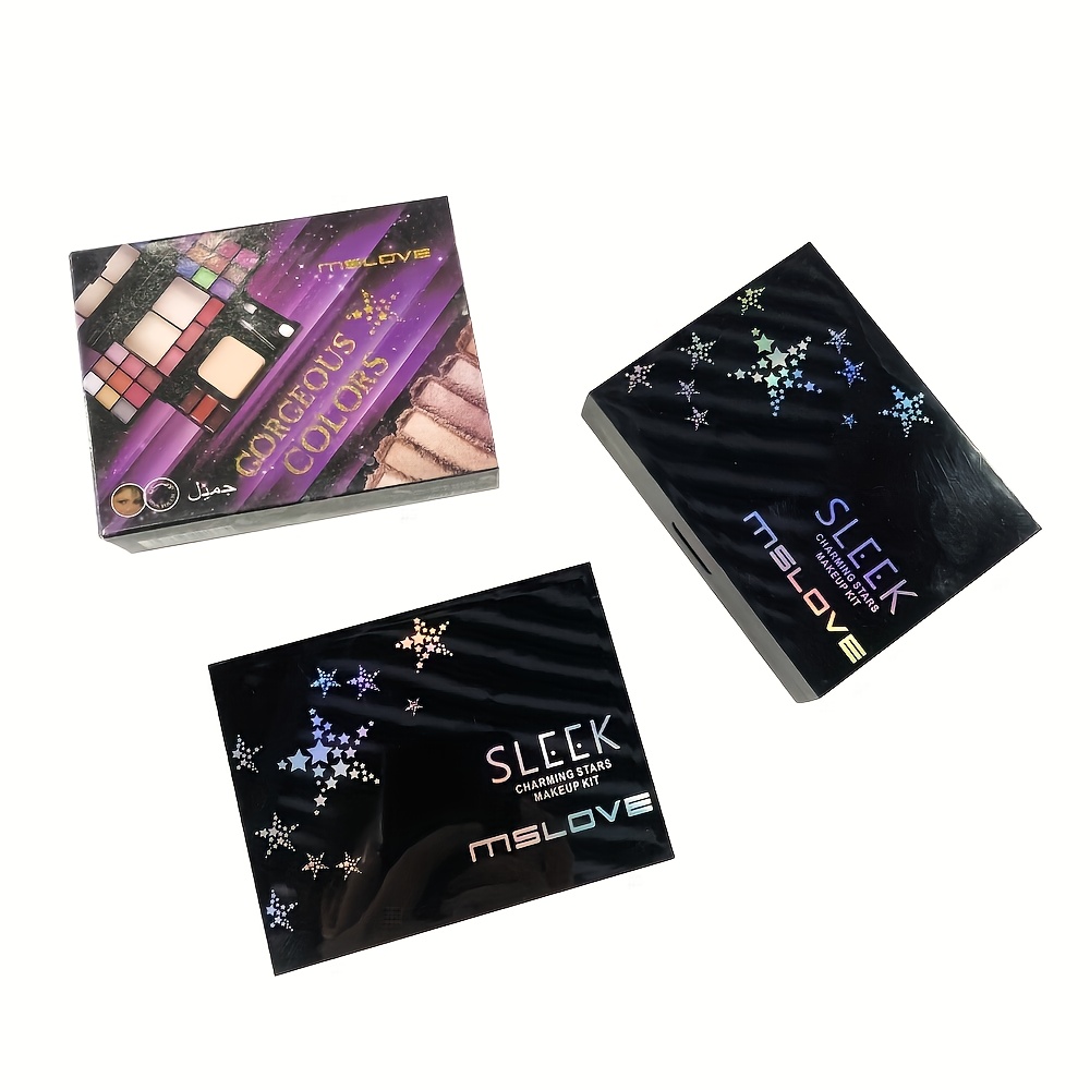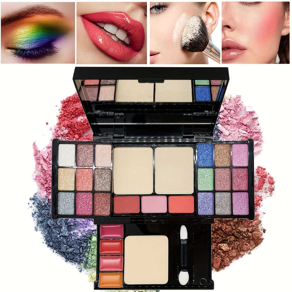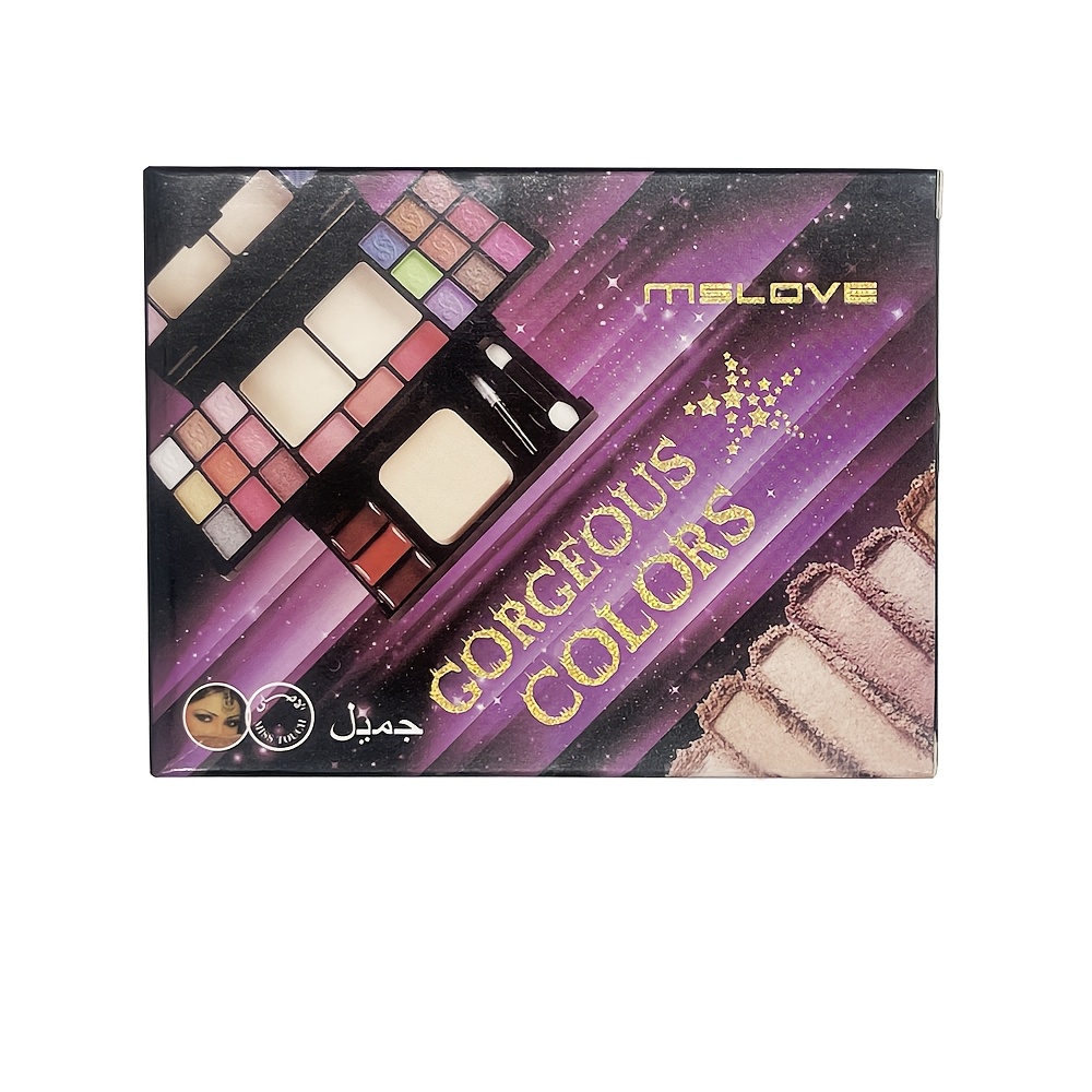 Pearly Shimmer Eyeshadow Palette Set, Contouring Blush Highlighter Makeup Box Set, Brightening Skin Tone Punk Style Daily Makeup with Lip Pencil, eyeliner Pen, Lip Gloss And Brushes Cosmetics Set