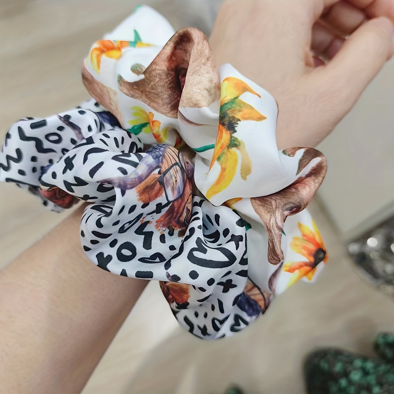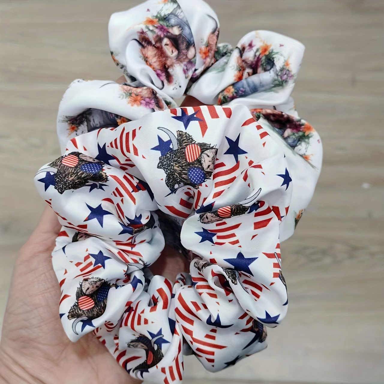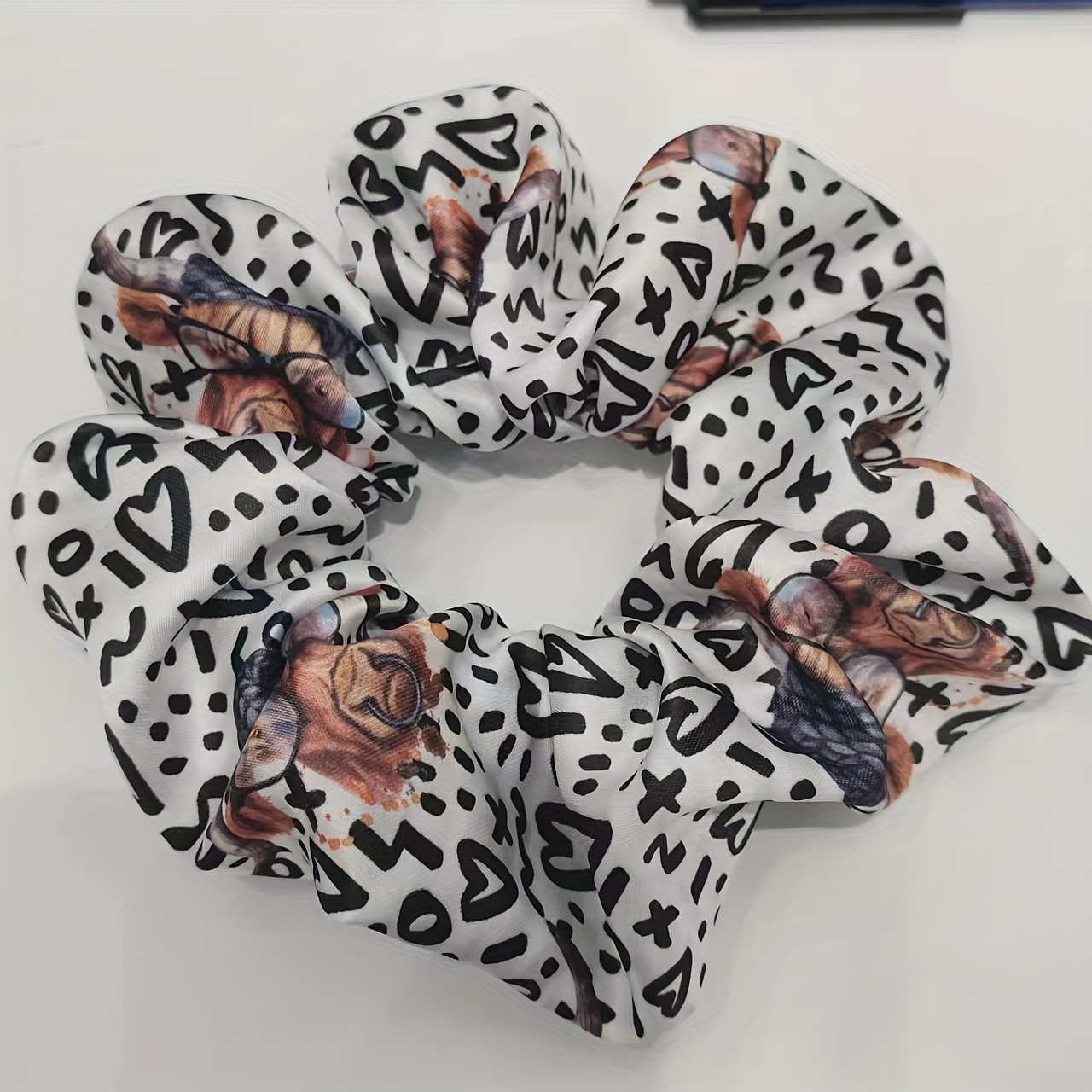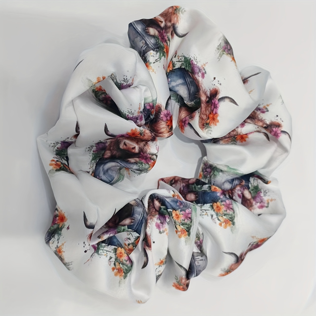 2pcs Adorable Highland Cow Pattern Scrunchies –
