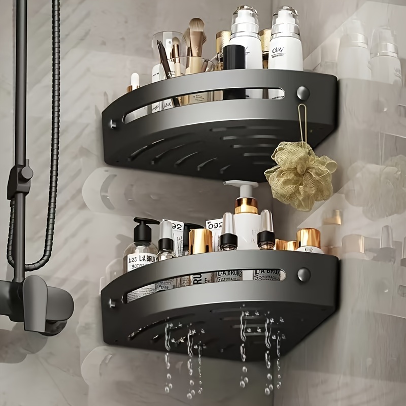 2pcs Corner Shower Caddy – No-Drill Adhesive Bathroom Storage Rack, Wall-Mounted Organizer for Shampoo & Essentials