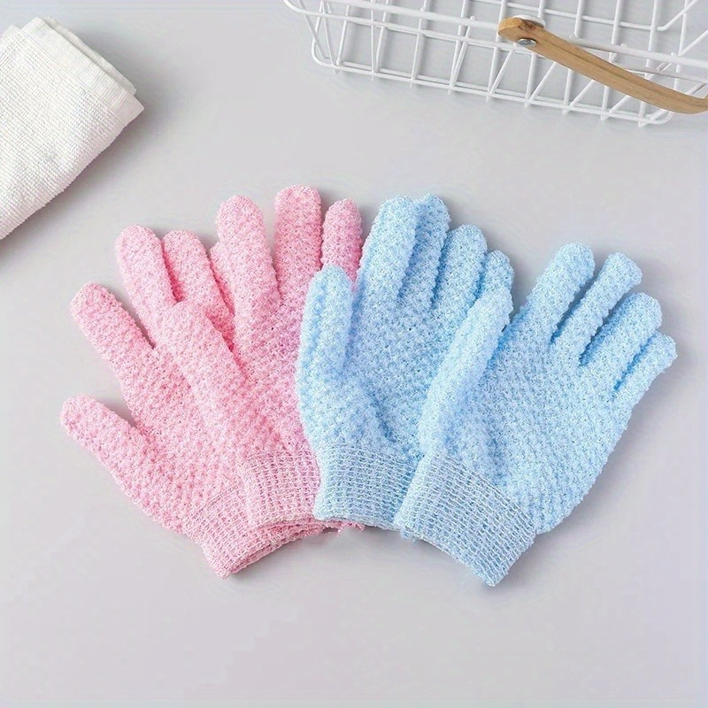 2pcs Exfoliating Bath Gloves, Double-Sided Massage Scrubbing Mitts, Unscented Frosted Towel for Full Body Cleanse and Skin Care, Massage Bath Mitts | Fivefinger Design | Effective Cleaning Glove