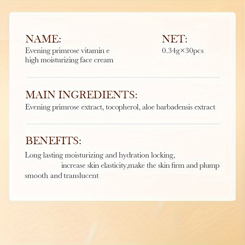 30pcs/Box High Moisturizing Essence Cream. Evening Primrose