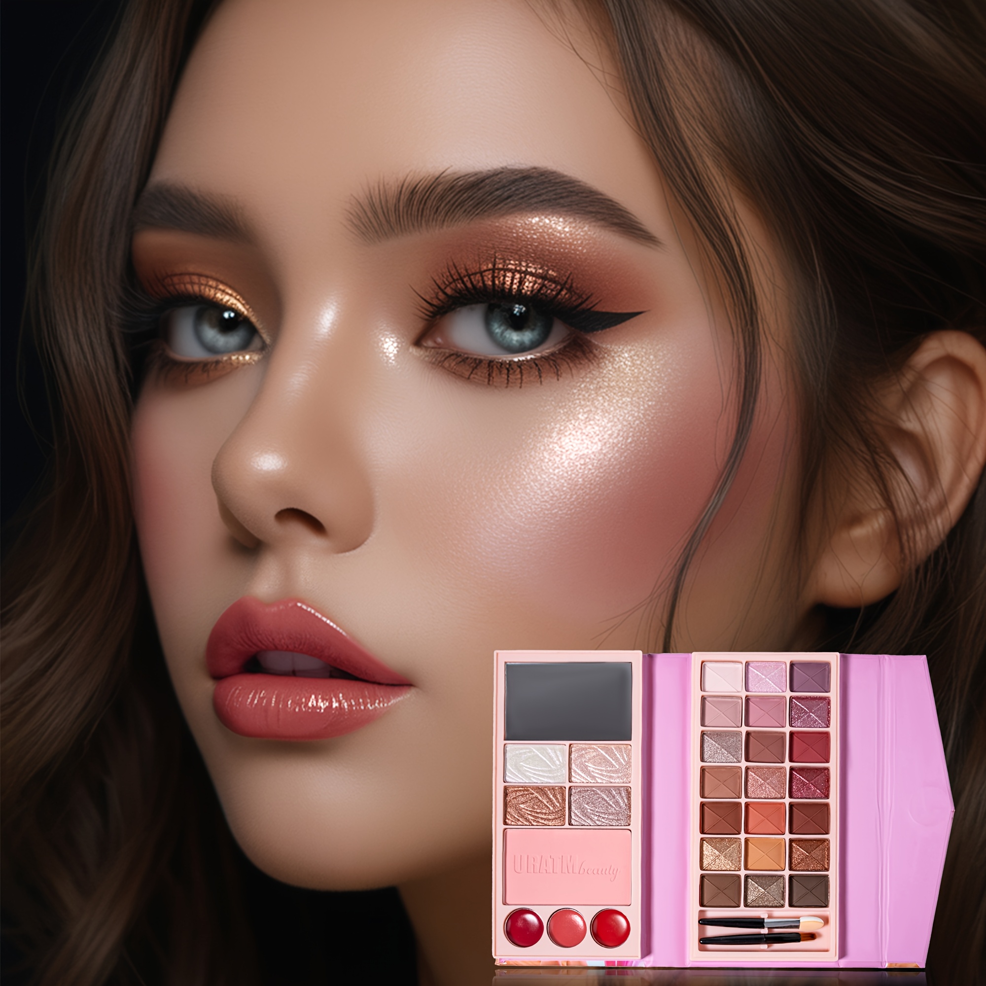 Pearly Shimmer Eyeshadow Palette Set, Contouring Blush Highlighter Makeup Box Set, Brightening Skin Tone Punk Style Daily Makeup with Lip Pencil, eyeliner Pen, Lip Gloss And Brushes Cosmetics Set
