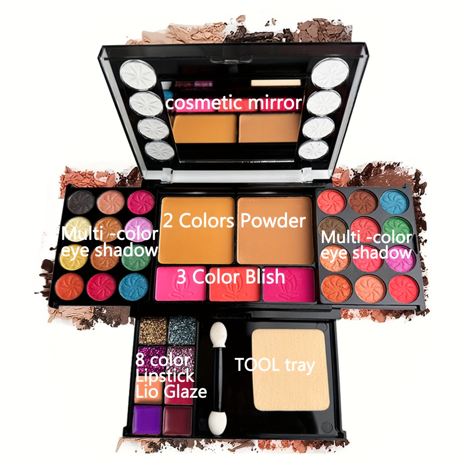 37-Color Multifunctional Makeup Palette with Pearl Eyeshadow, Waterproof Lipstick & Blush Set, Includes Brushes, Sponge & Mirror – Ideal Gift for Valentine’s, Christmas, Mother’s Day, Makeup Brushes