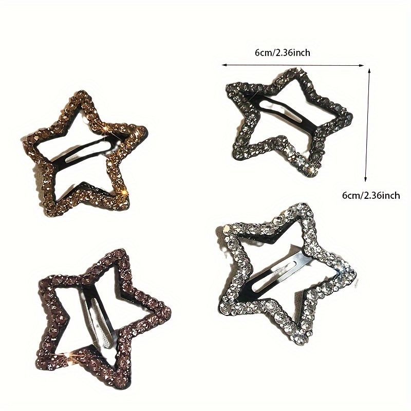 4pcs Rhinestone Star Hair Clips, Alloy Side