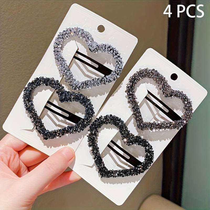 4pcs Set Sparkling Rhinestone Heart Hair Clips