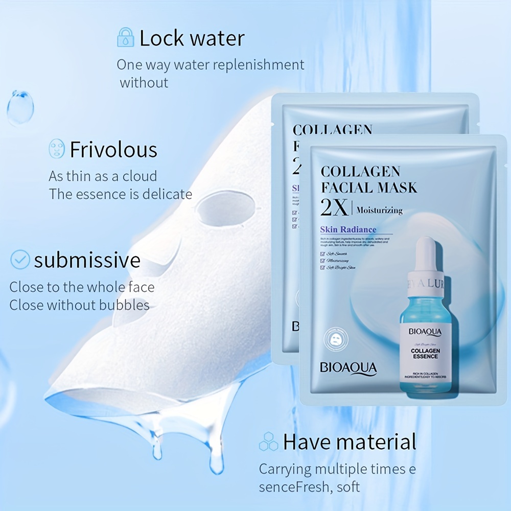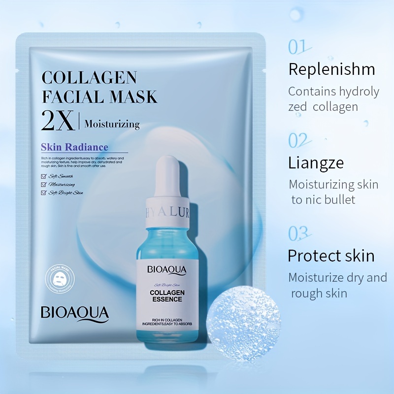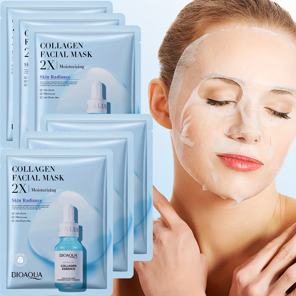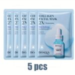 5-Pack Collagen Facial Mask Set – Paraben-Free, Rose Scented, Moisturizing & Firming for All Skin Types – Hydrating & Radiance Boosting Sheets with Collagen Essence