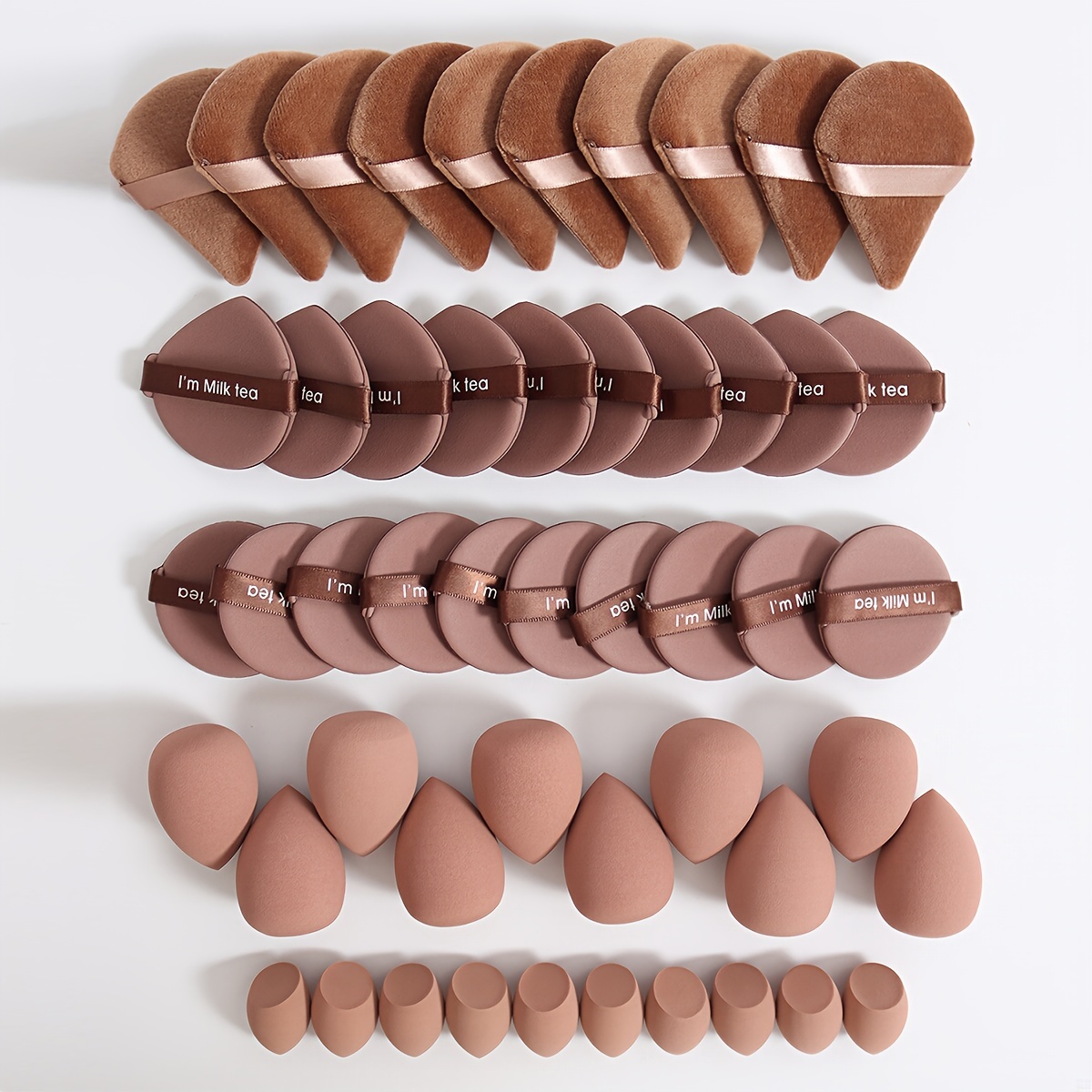 50pc Makeup Tool Set, Velvet Beauty Puffs,