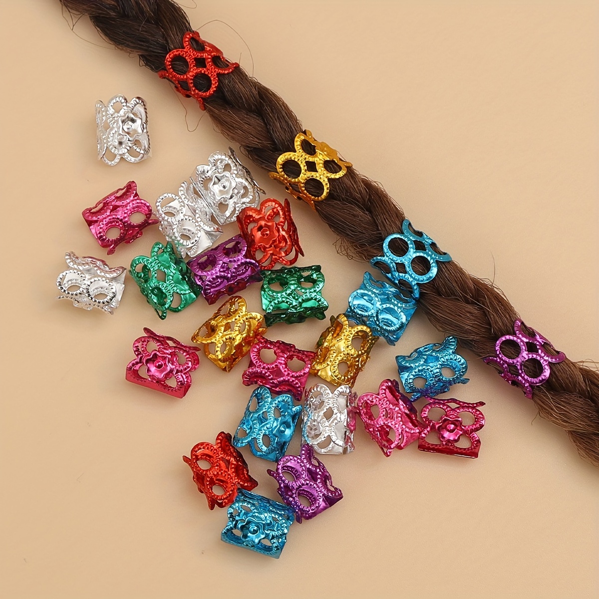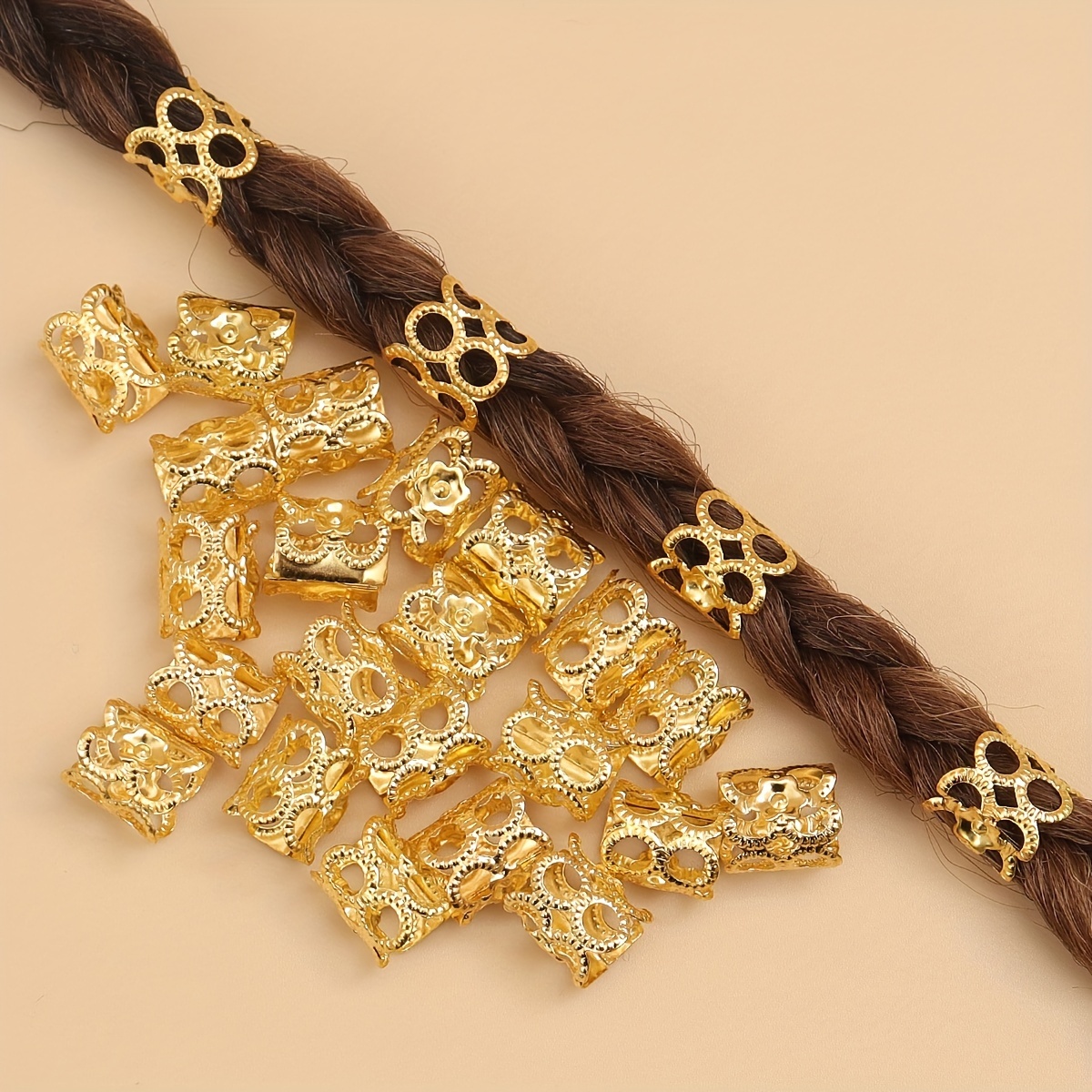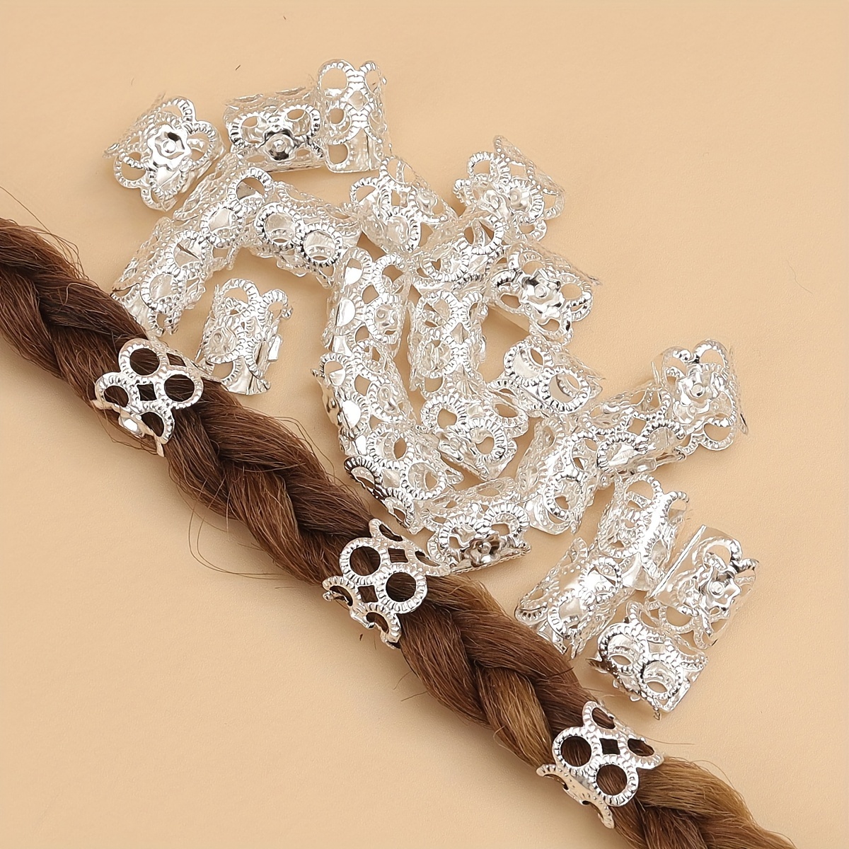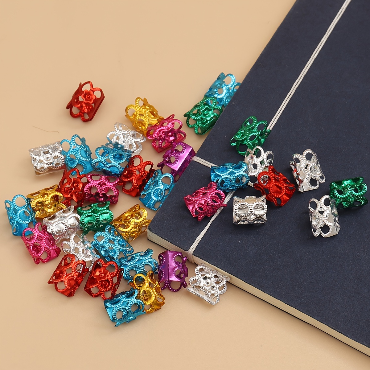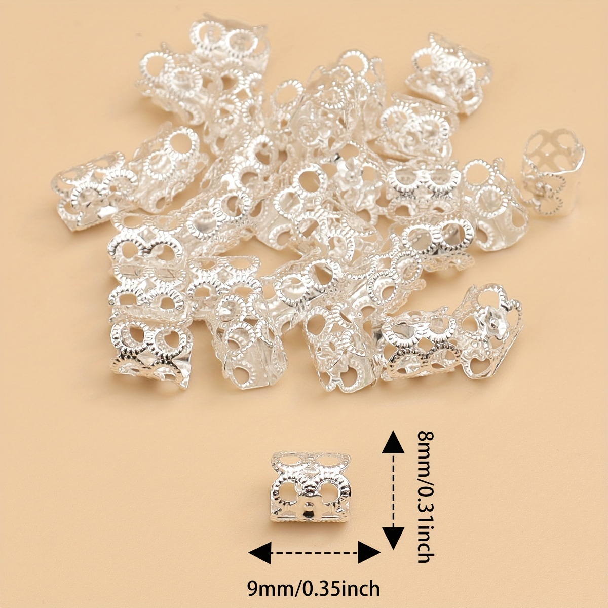 50pcs Golden Silvery Dreadlock Hair Beads Adjustable