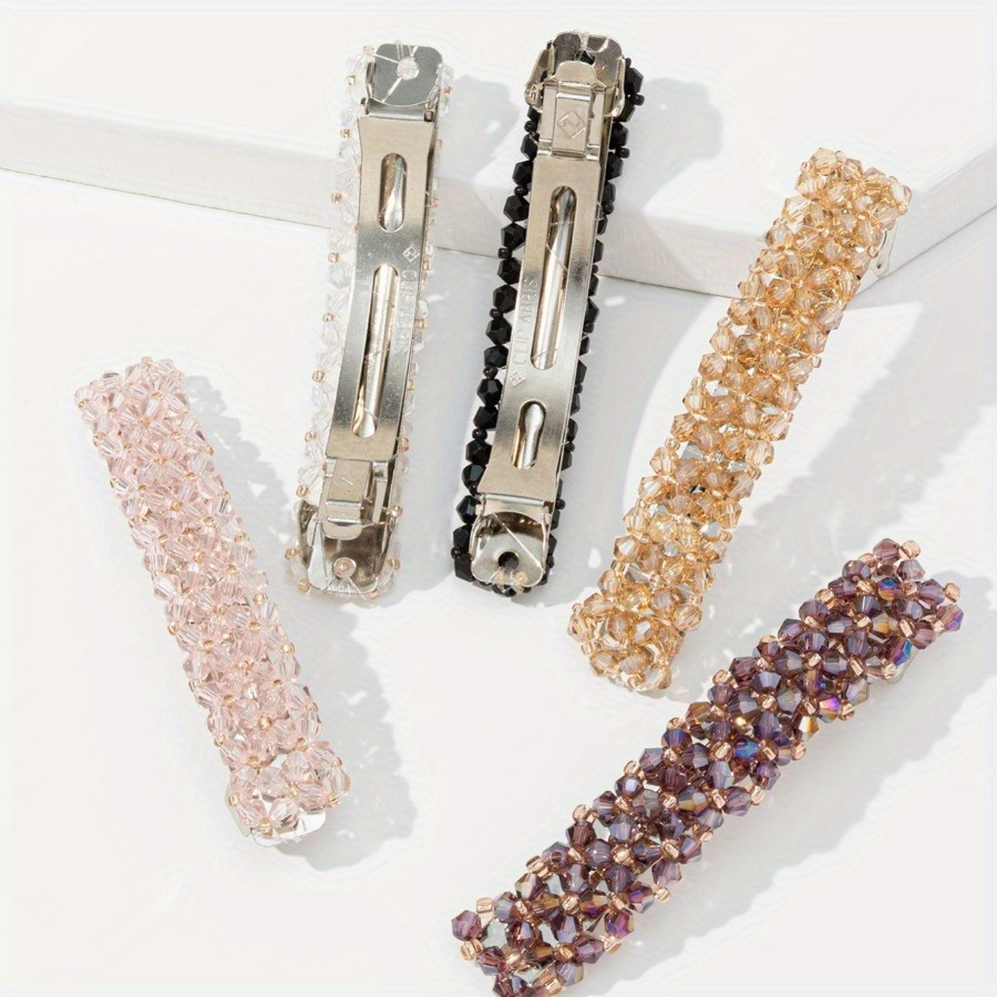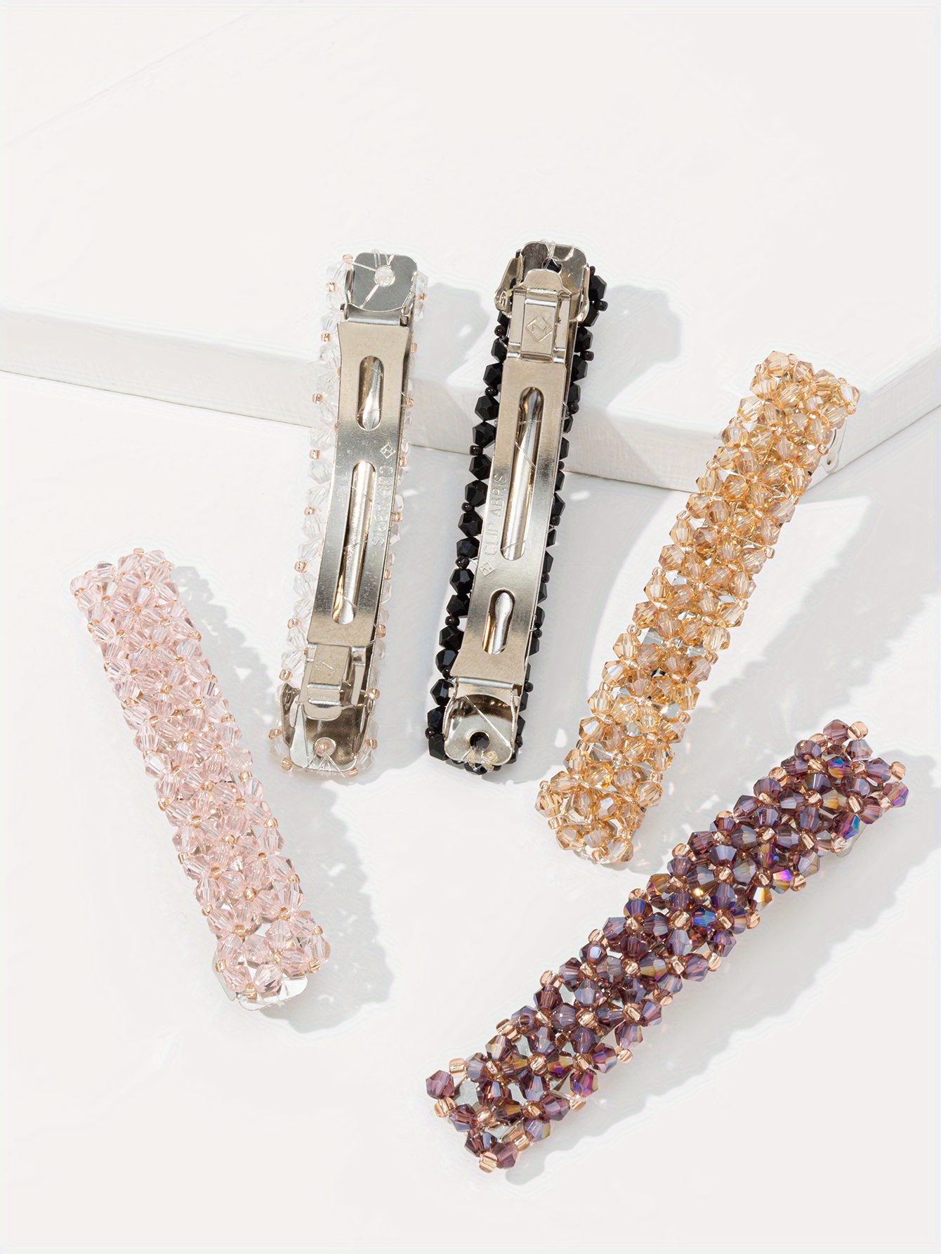 5pcs Elegant Handmade Crystal Hair Clips, Fashionable