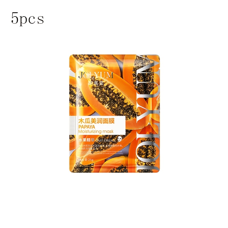 5pcs JOYUMI Papaya Hydrating Face Masks, 25g – All Skin Types, Oil-Free, Moisture-Rich Essence with Natural Papaya Extract for Plump, Radiant Skin