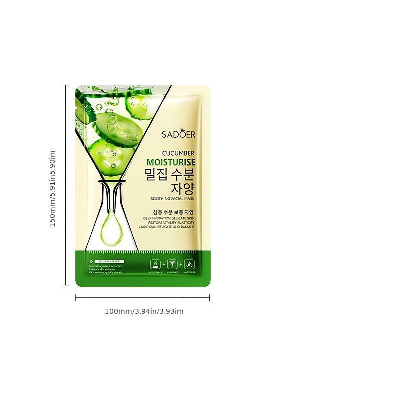 Be the first to review “5pcs SADORÉ Cucumber Moisturizing Face Masks – Hypoallergenic, Adult, All Skin Types, Glycerin-Enriched with Aloe Vera Extract, Travel-Friendly Hydration Care, Skin Moisturizing Mask|Fresh Aesthetic Mask|Plantbased Ingredients” Cancel reply