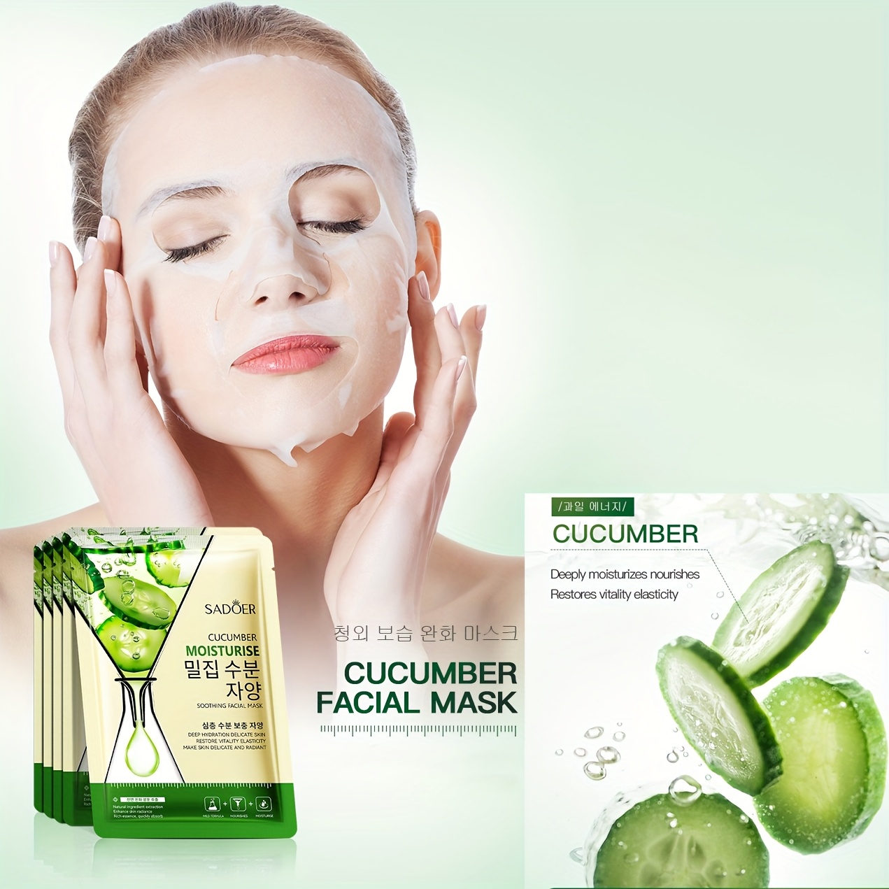 5pcs SADORÉ Cucumber Moisturizing Face Masks – Hypoallergenic, Adult, All Skin Types, Glycerin-Enriched with Aloe Vera Extract, Travel-Friendly Hydration Care, Skin Moisturizing Mask|Fresh Aesthetic Mask|Plantbased Ingredients