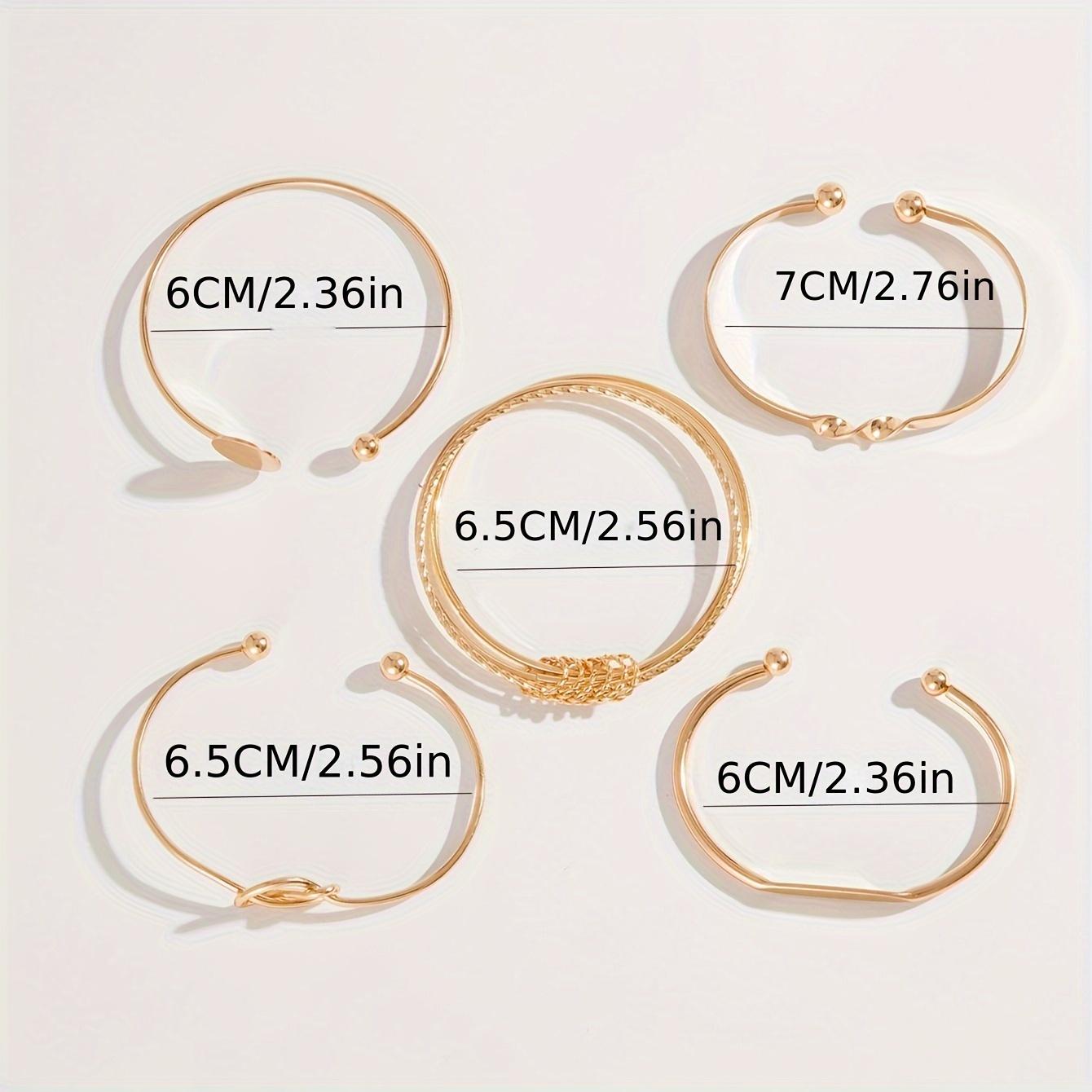 5pcs/set Bangle, Minimalist Geometric Round Glossy Alloy Bangle Bracelet, Retro Trendy Knotted Open Cuff Bangle Set For Women