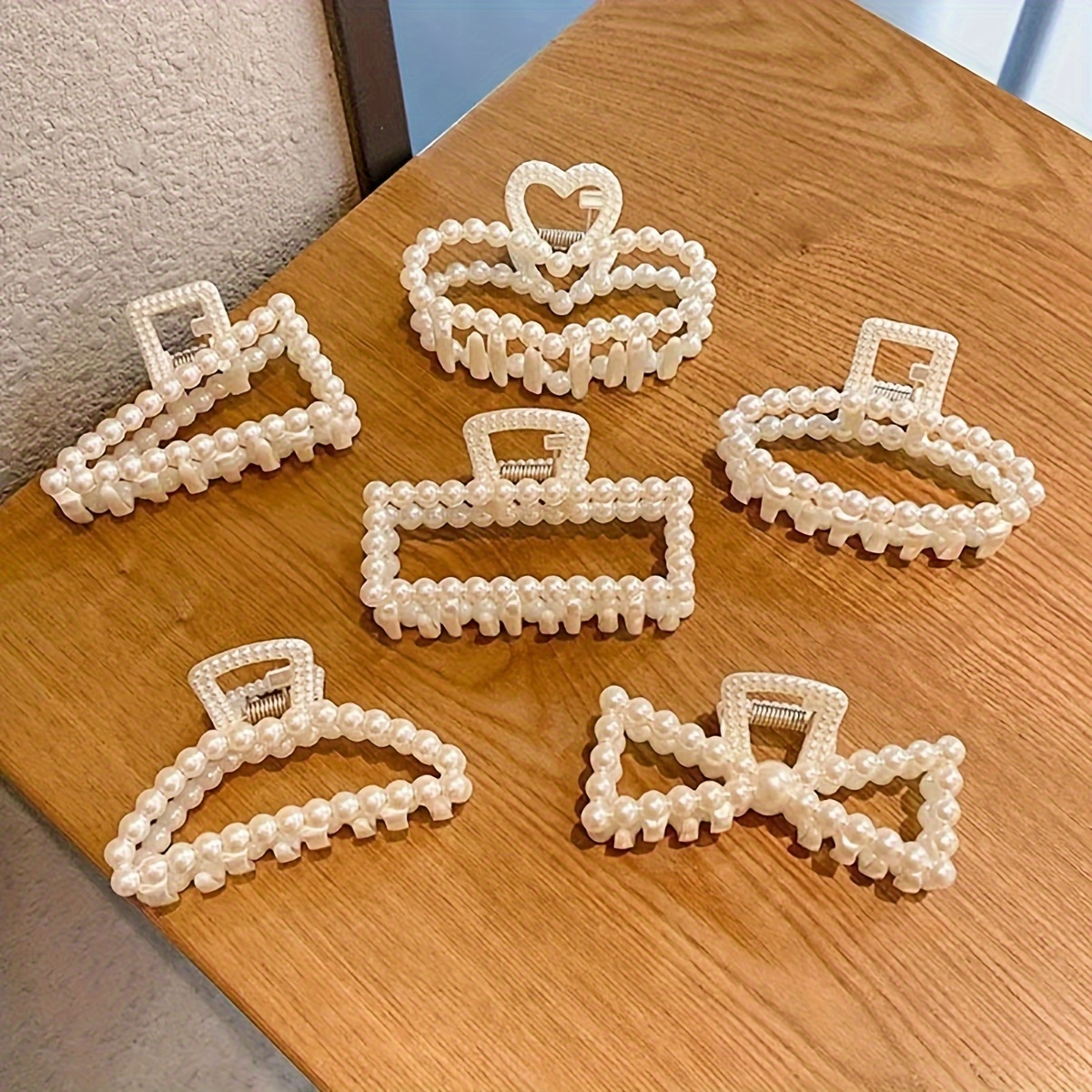 6 Pcs/Set Faux Pearl Hair Claw Clips
