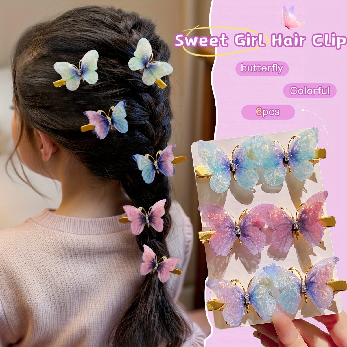 6pcs Cute Butterfly Hair Clips, Mixed Color