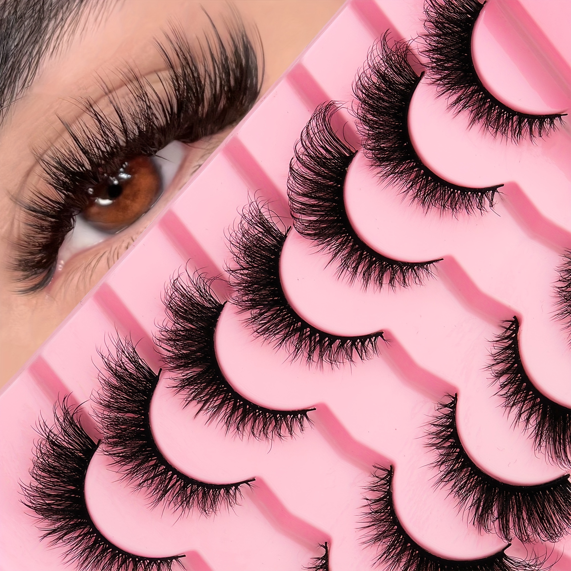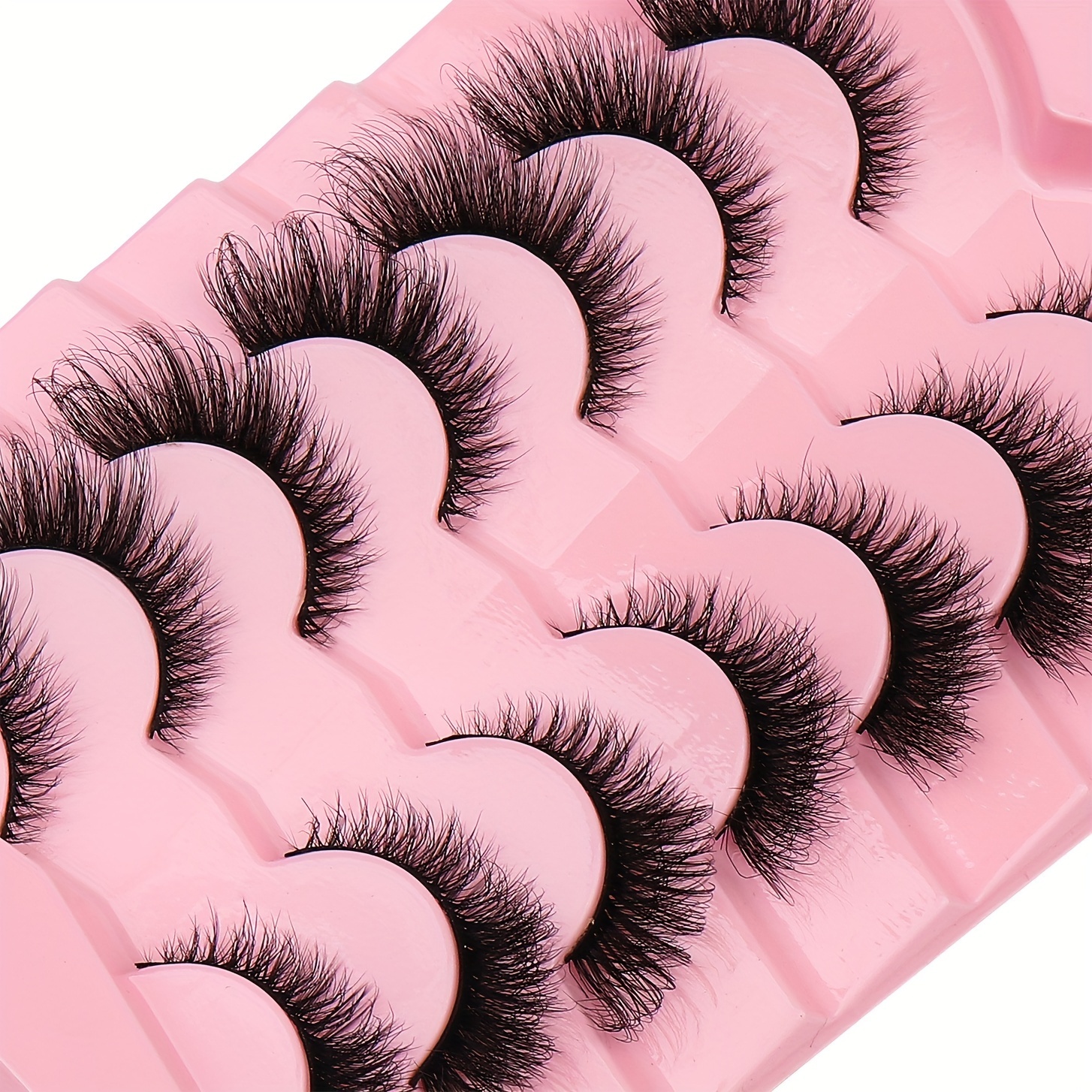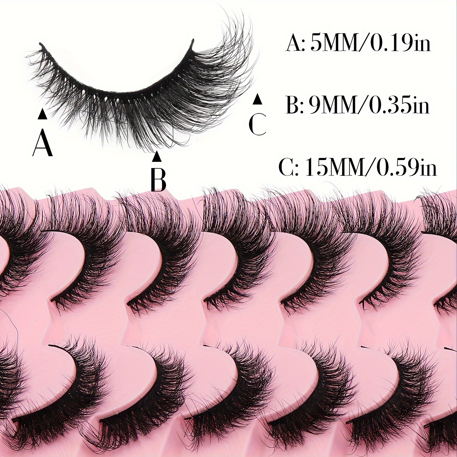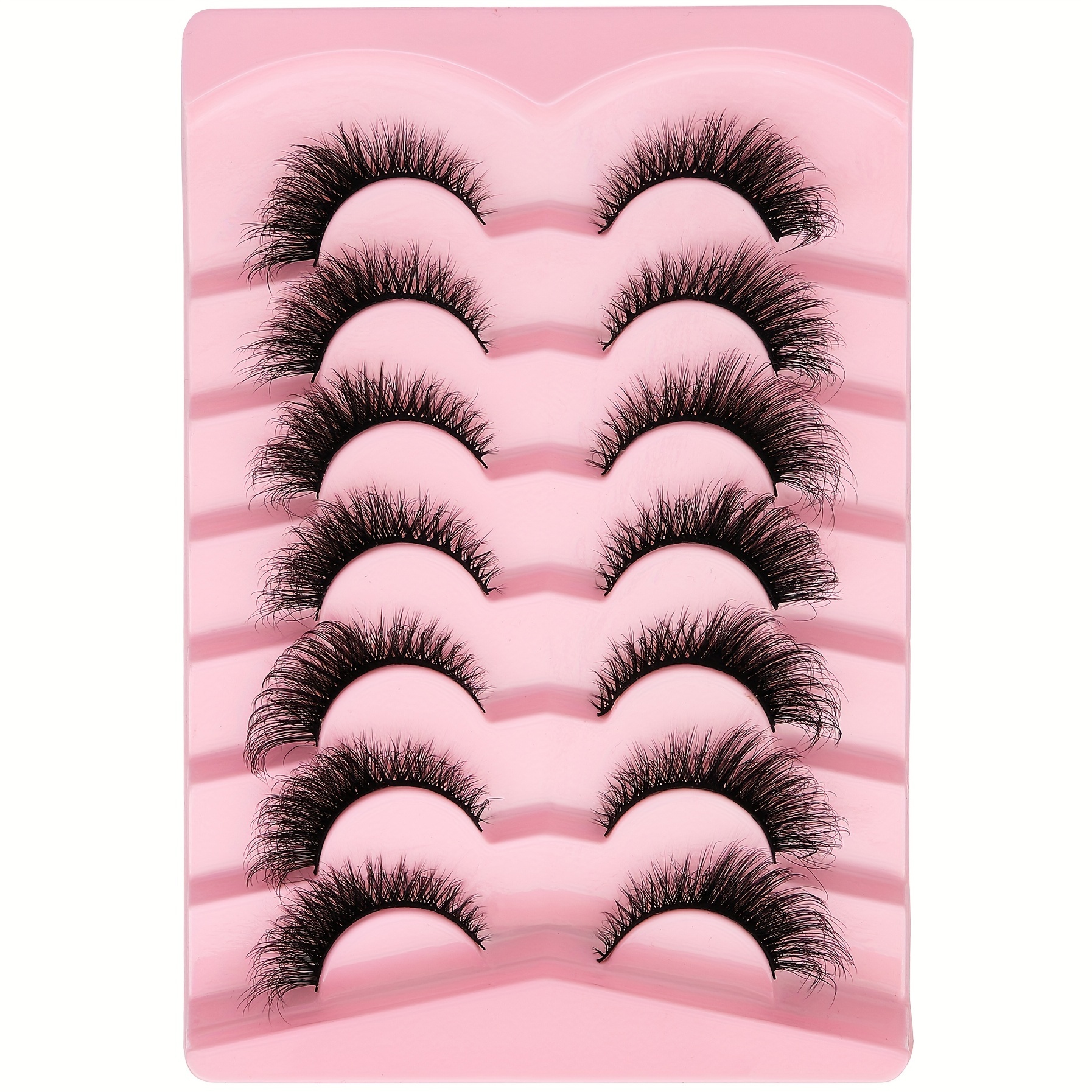 7 Pairs of Cat Eyelashes, Waterproof Mink False Eyelashes, Length 5-15mm, Fluffy 3D Black Band Eyelashes, Can Extend Makeup